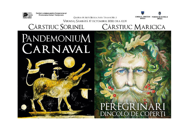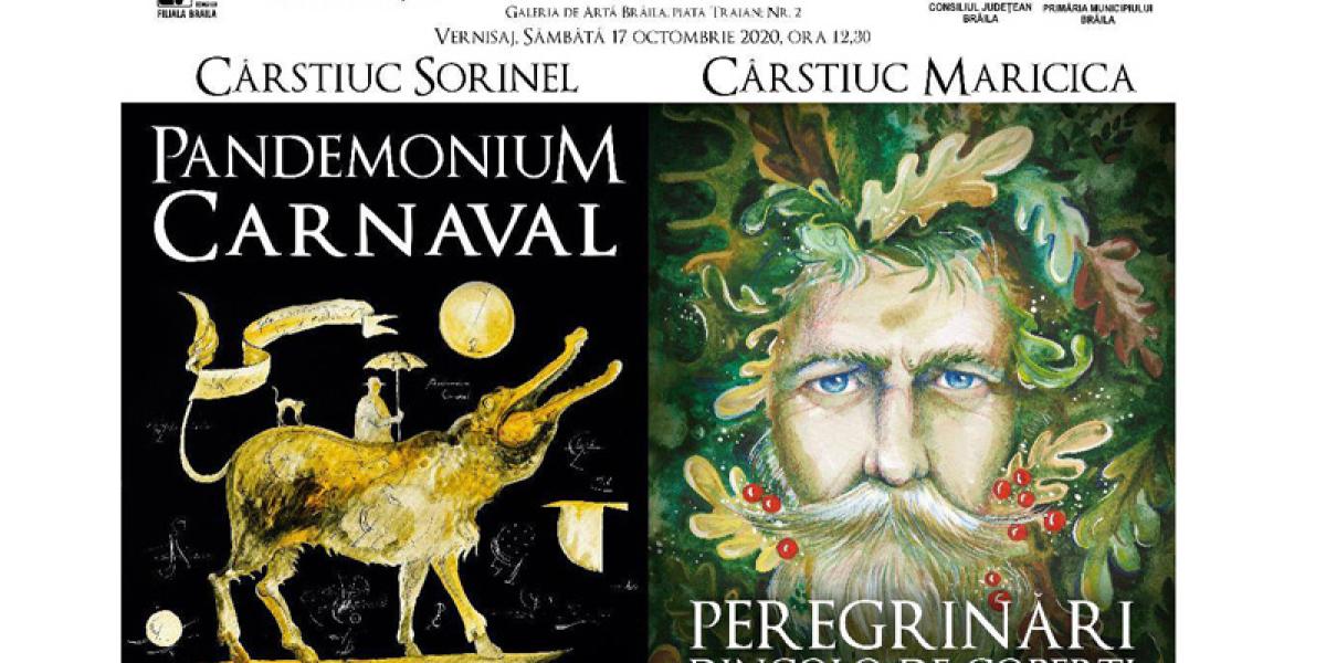 Sâmbătă, 17 octombrie, de la ora 12.30, la Galeriile de Artă din Băila va avea loc Vernisajul Expoziţiilor Pandemonium Carnaval şi Peregrinări dincolo de coperţi, aparţinând artiştilor Cârstiuc Sorinel şi Cârstiuc Maricica.