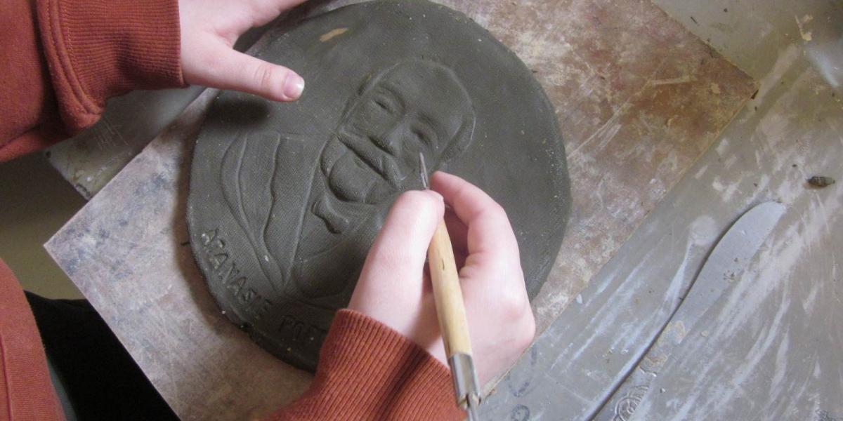 * expoziția de ceramică și desen este realizată de elevii Liceului de Artă „Hariclea Darclee”, clasa a XI-a B - grupa de ceramică și tratează subiectul personalităților brăilene