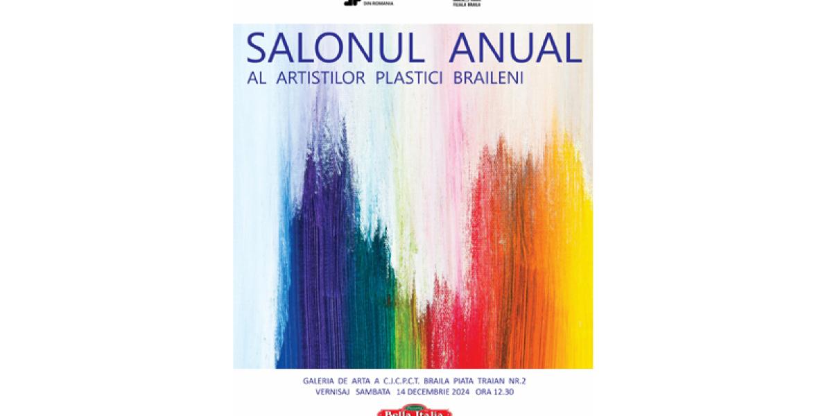 Iubitorii de artă și de frumos sunt invitați sâmbătă, 14 decembrie, începând cu ora 12:30, la vernisajul Salonului Anual al Artiștilor Plastici Brăileni, organizat de Uniunea Artiștilor Plastici din România (UAPR) - Filiala Brăila, în parteneriat cu Centrul Județean pentru Conservarea și Promovarea Culturii Tradiționale (Centrul de Creație) Brăila, la Galeria de Artă a CJCPCT, din Piața Traian nr. 2.