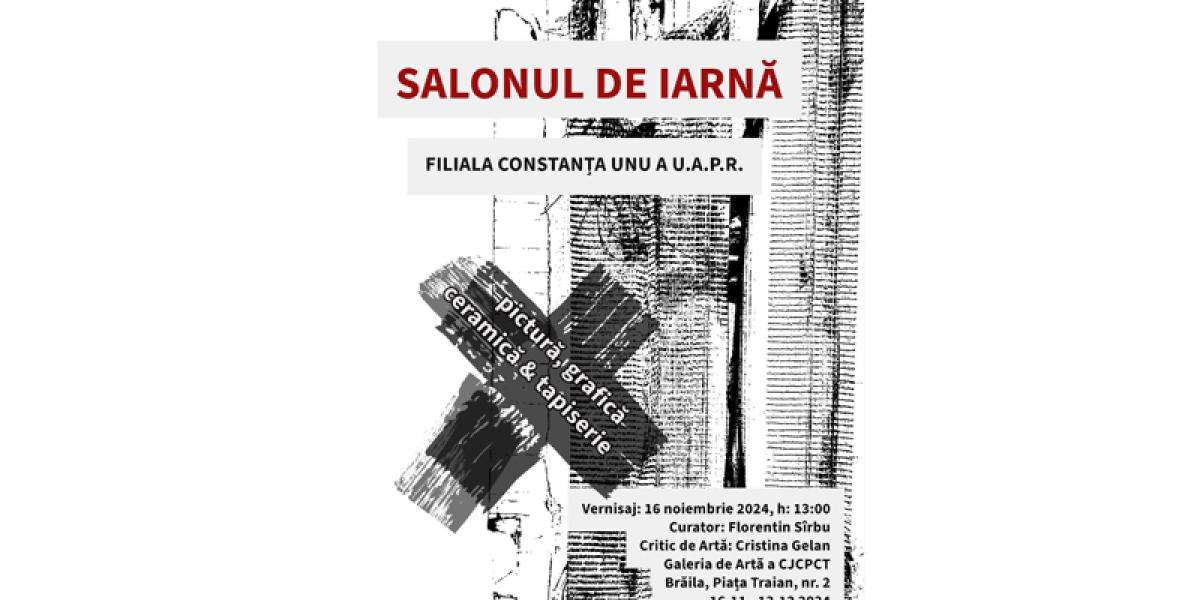 Consiliul Judeţean Brăila - prin Centrul Judeţean pentru Conservarea şi Promovarea Culturii Tradiţionale (Centrul de Creație) -, Primăria Municipiului Brăila, Uniunea Artiștilor Plastici din România (UAPR) - Filiala Brăila și, respectiv, Filiala Constanța UNU a UAPR, organizează sâmbătă, 16 noiembrie, ora 13:00, la Galeria de Artă, din Piața Traian nr. 2, vernisajul Salonului de Iarnă, „o expoziție de arte vizuale, o invitație de a lua parte la un univers autentic, imaginat și colorat de artiștii expozanți”.