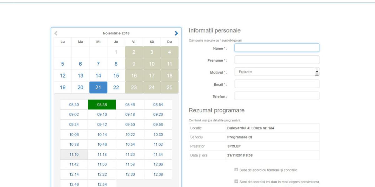 De precizat că programările online se pot face doar de luni până joi. Vinerea, sâmbăta şi duminica, precum şi în zilele libere legale, serviciul este închis.