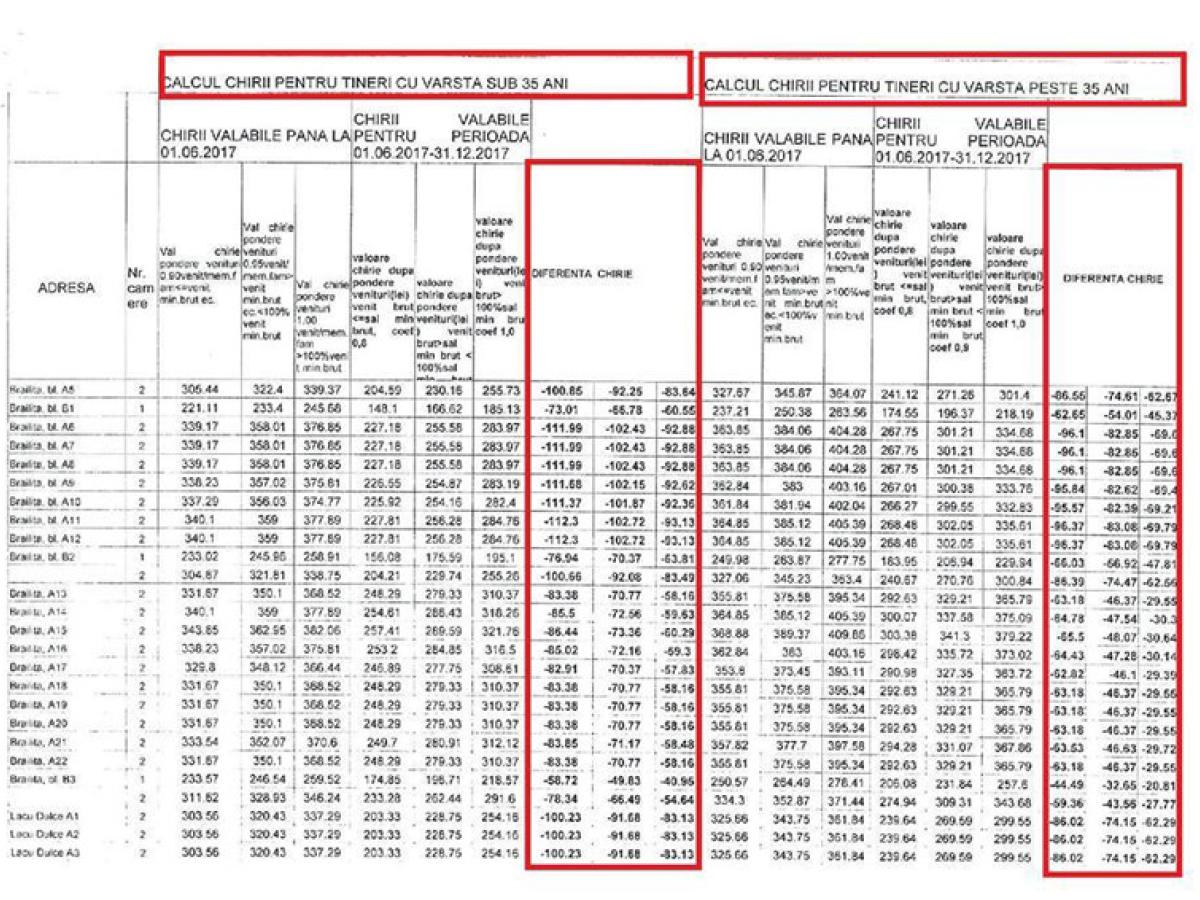 “Anul trecut, Guvernul Cioloş creştea chiriile pentru tinerii care locuiesc la ANL. Anul acesta, după demersurile făcute de asociaţiile de chiriaşi, Primăria Brăila şi alte primării, avem posibilitatea legală să reparăm greşeala unui guvern care confundă oraşele de provincie din România cu Bruxelles. Vă ataşez un document demostrativ pentru tinerii sub 35 de ani şi peste 35 ani (pentru a nu exista confuzii, aceştia au primit locuinţe înainte de a împlini 35 de ani)! Detalii vor fi afişate la avizierul fiecărui bloc în luna iulie”, a mai afirmat Dragomir.