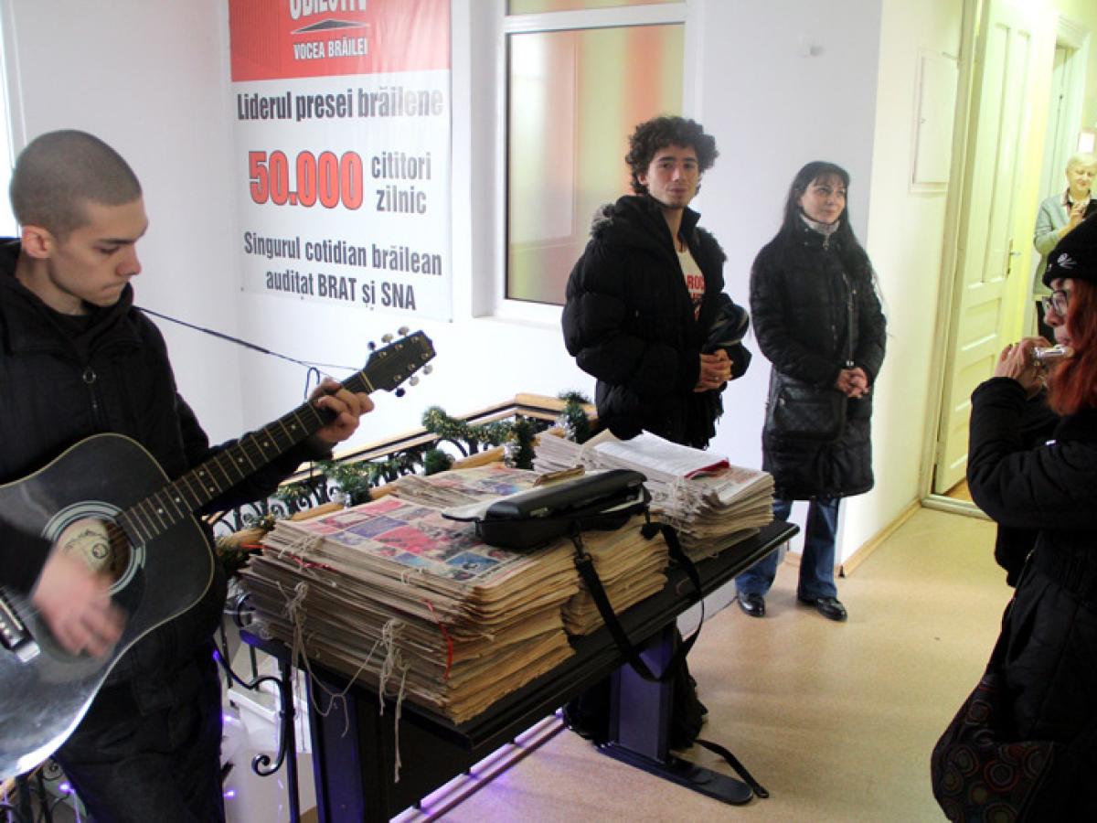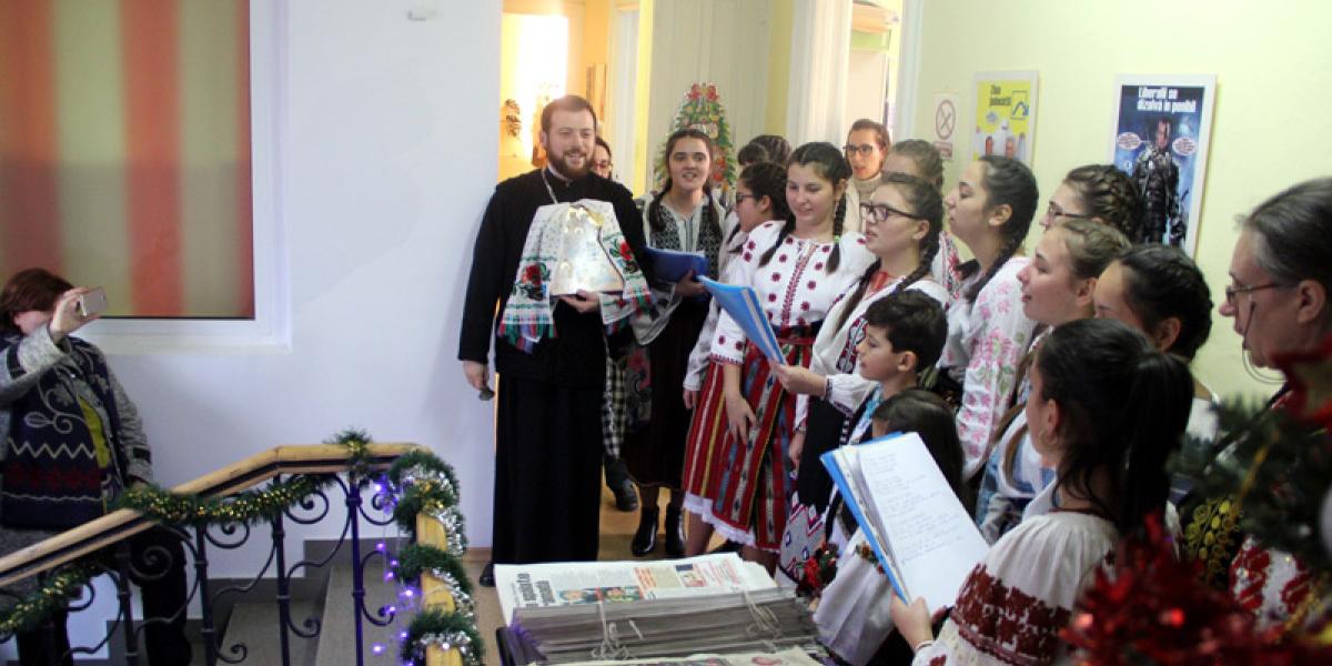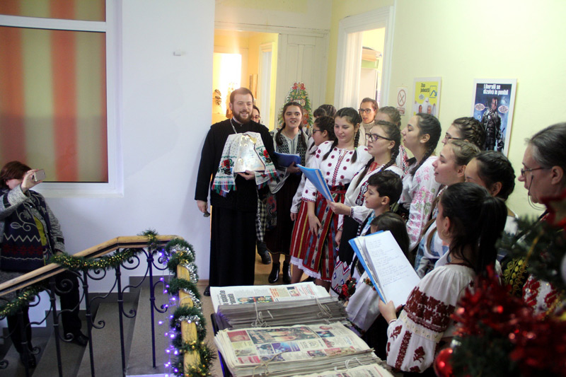 Şi părintele Cristian Ion, din cadrul parohiei “Sf. Ioan Botezătorul” din Ianca, însoţit de ceata de colindători, ne-a ales să-i fim gazde. Îmbrăcaţi în porturi populare vechi de zeci de ani, copiii ne-au cântat şi încântat cu colindele alese. Redacţia s-a umplut de miros de Mir Sfânt, iar Harul preotului l-am simţit cu toţii. “Cum voi sunteţi vestitori pentru oameni, scrieţi ştiri, aşa ne-am transformat şi noi, astăzi (ieri -n.r.), în vestitorii Naşterii Domnului Iisus Hristos şi am venit de la Ianca să vă colindăm”, ne-a spus părintele Cristian Ion, la final.