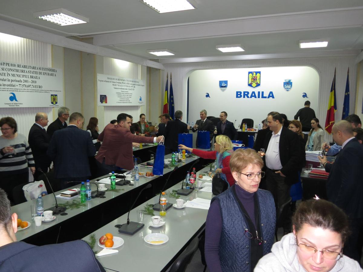 edilul-şef al Brăilei a transmis un mesaj către cei prezenţi în sală: “Doamnelor şi domnilor consilieri şi stimaţi invitaţi, eu vă mulţumesc foarte mult pentru faptul că am reuşit să colaborăm pe parcursul acestui an. Este adevărat că am avut şi divergenţe, dar ştiţi că democraţia se naşte din astfel de lucruri, niciodată dintr-o viziune unitară. Vă aşteptăm de fiecare dată să vă spuneţi opiniile la comisii şi în plen. Vreau să vă mulţumesc dumneavoastră, celor din mass-media, pentru că aţi publicat de fiecare dată lucruri pe care noi le-am adoptat în şedinţă de Consiliu Local. Vă dorim «La mulţi ani!», iar în 2018 să avem proiecte mai bune decât cele din 2017!”. Consilierii au ciocnit pahare cu şampanie şi şi-au făcut urări.