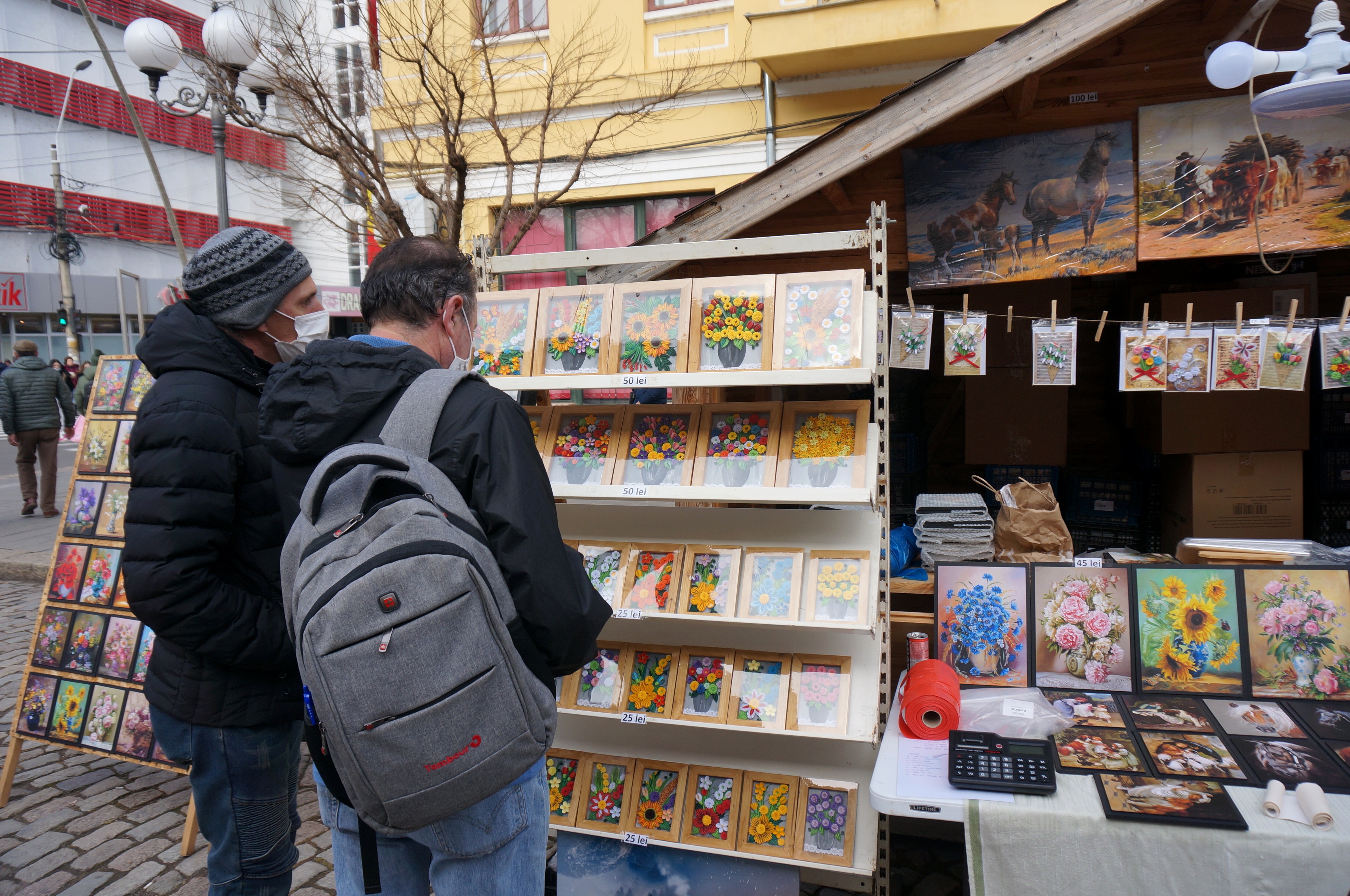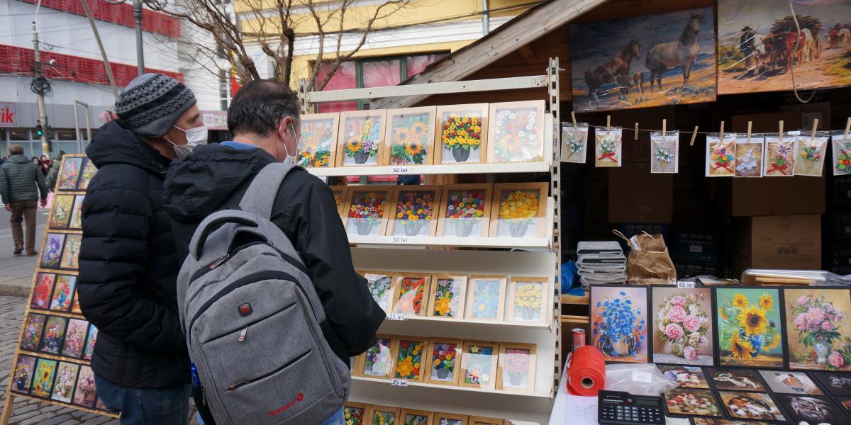 La această ediție a târgului sunt prezenți și comercianți din alte județe, iar pe unul îl veți întâlni fix la prima căsuță cum intri pe Strada Mihai Eminescu dinspre magazinul Dunărea. Acolo veți auzi o muzică ce te duce cu gândul la perioada interbelică, iar odată ce te apropii vei găsi multe tablouri realizate în canvas și în tehnica quilling. Cel care te va întâmpina cu o vorbă bună este Răzvan Stoian, un antreprenor din Prahova, care se află pentru a doua oară la Târgul de Mărțișor organizat la Brăila. Iar după ce anul trecut au vândut toate produsele până să vină măcar 1 martie, anul acesta a venit mai “încărcat” de mărțișoare.