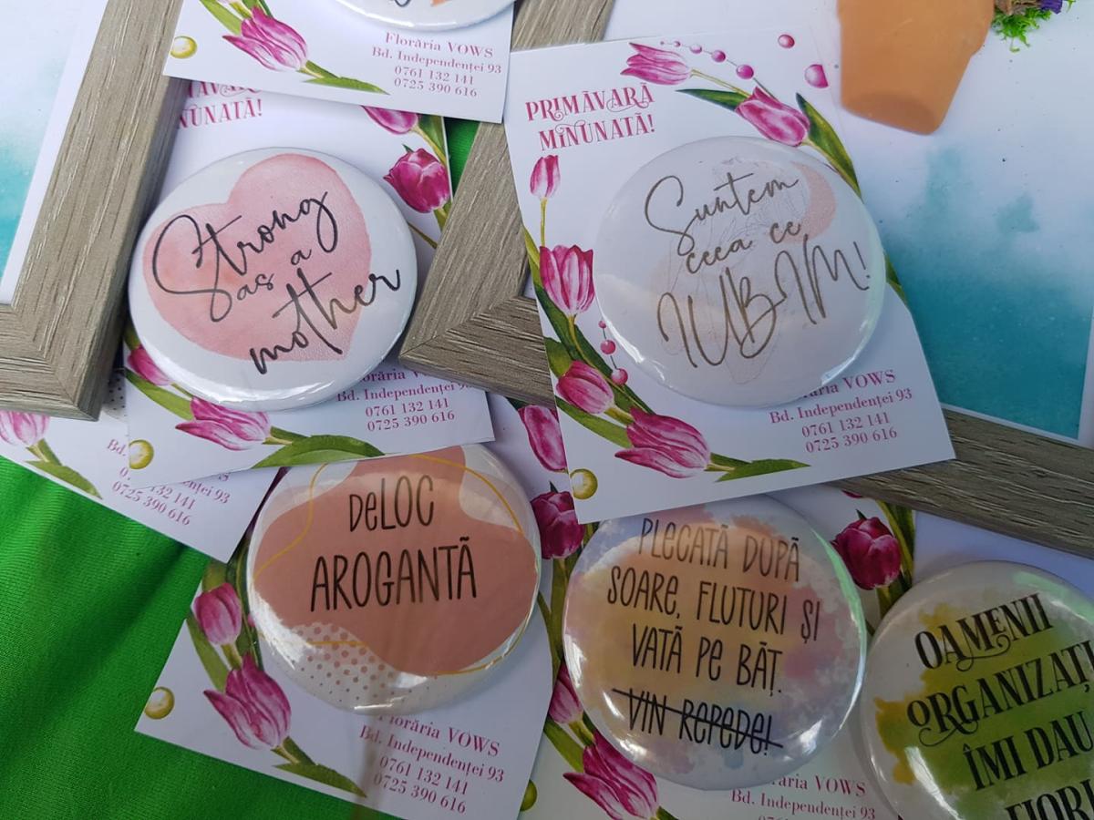 Trebuie spus că Florăria Vows este prezentă la târg cu mai multe tipuri de mărțișoare, fiecare având ceva aparte, cum sunt produsele cu licheni stabilizați. Pentru elevii de gimnaziu și liceu sunt disponibile “mărțișoare cool”, cum sunt insignele și brelocurile personalizate cu mesaje în limba română și limba engleză. “Tot ce facem aici încercăm să facem cât mai mult noi, astfel încât să obținem și prețuri acceptabile și să oferim și altceva”, ne-a mai spus aceasta.