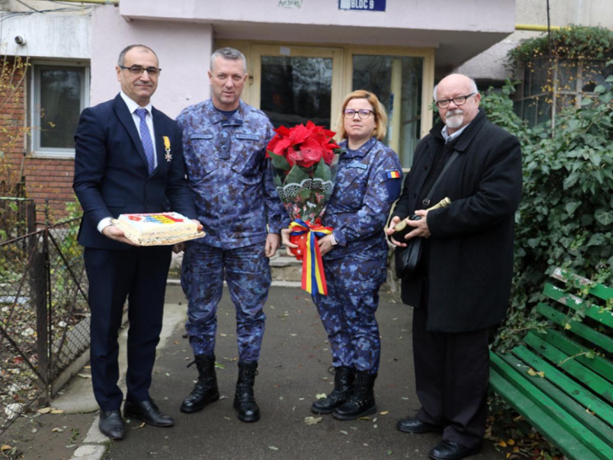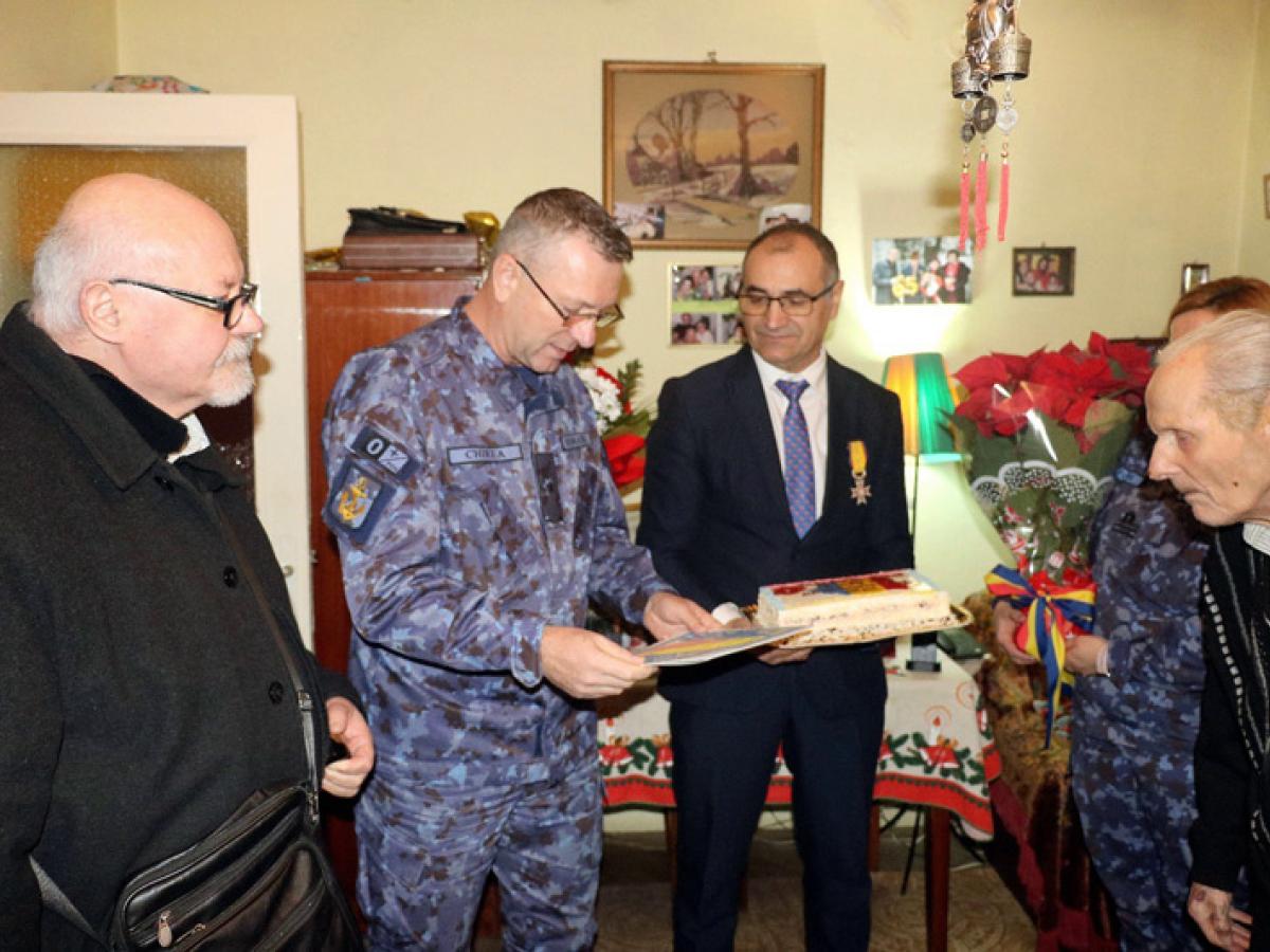 În acest context, contraamiralul de flotilă Nicu Chirea, împreună cu ofițeri din cadrul Comandamentului Flotilei Fluviale “Mihail Kogalniceanu” Brăila și reprezentanți ai Asociației Naționale Cultul Eroilor „Regina Maria” - Filiala Brăila „General Stan Poetaș” (vicepreședinte col. (rz.) dr. ing. Mihail Balaban și președinte, col. (rtr.) Constantin Giurgea), au fost alături de fostul ostaș al Armatei Române, în acest moment deosebit din viața sa și l-au felicitat pentru împlinirea frumoasei vârste.
