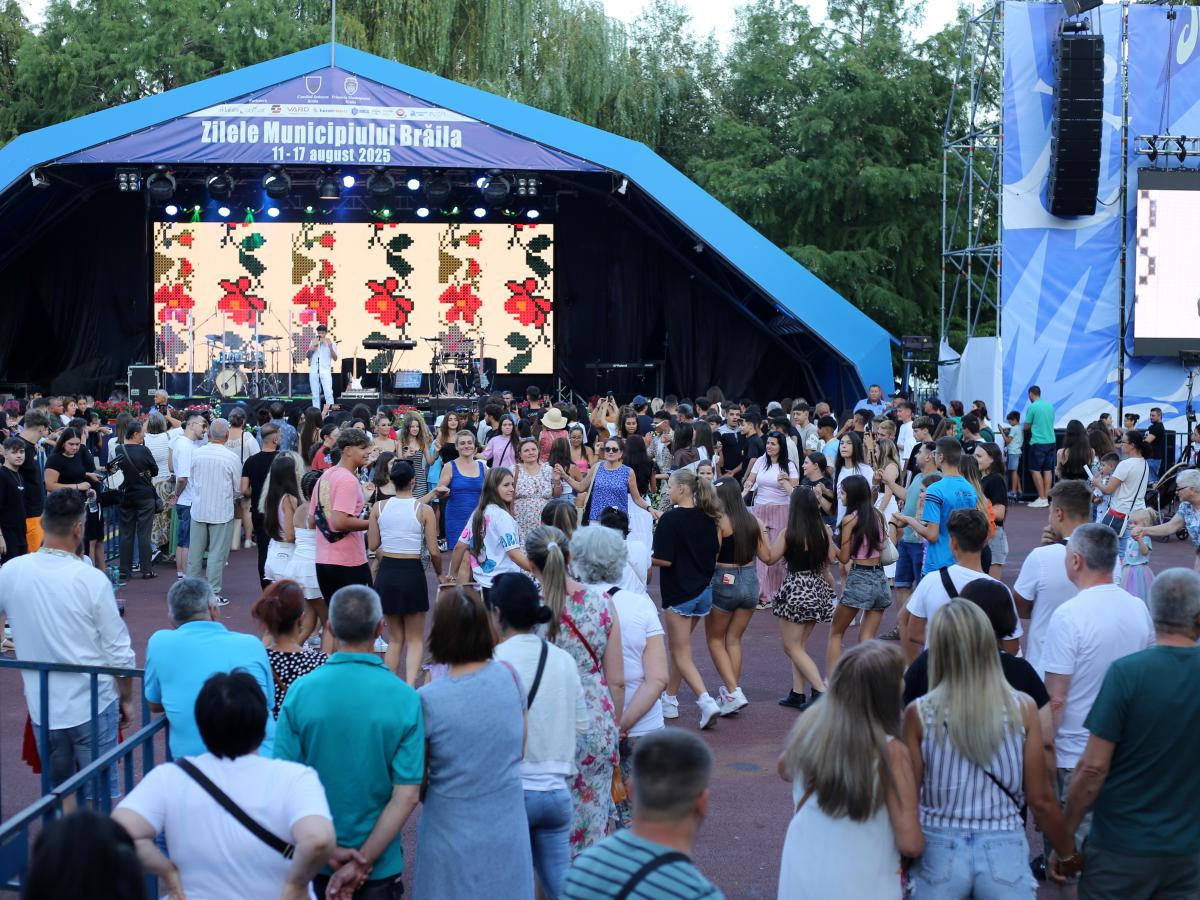 * mii de oameni s-au bucurat de evenimentele organizate de Primăria Municipiului Brăila cu ocazia Zilelor Orașului în perioada 8 - 17 august * după târgul buchiniștilor, dans și concerte în Centrul Istoric, parade, totul a culminat în weekend cu spectacolul militarilor de Ziua Marinei, dar și show-urile unora dintre cei mai în vogă artiști din România: Andra, Irina Rimes, Smiley, Alex Velea, Misha Miller, Andrei Bănuță și binecunoscuta trupă Azur * pe lângă proiecții pe apă, spectacole cu laser și artificii mai ceva ca de Revelion, autoritățile plănuiseră un show deosebit cu drone, însă din motive tehnice, acesta a trebuit anulat * primarul Marian Dragomir a ținut să le mulțumească public brăilenilor pentru participarea numeroasă la toate evenimentele organizate de municipalitate cu ocazia Zilelor Municipiului Brăila în 2025