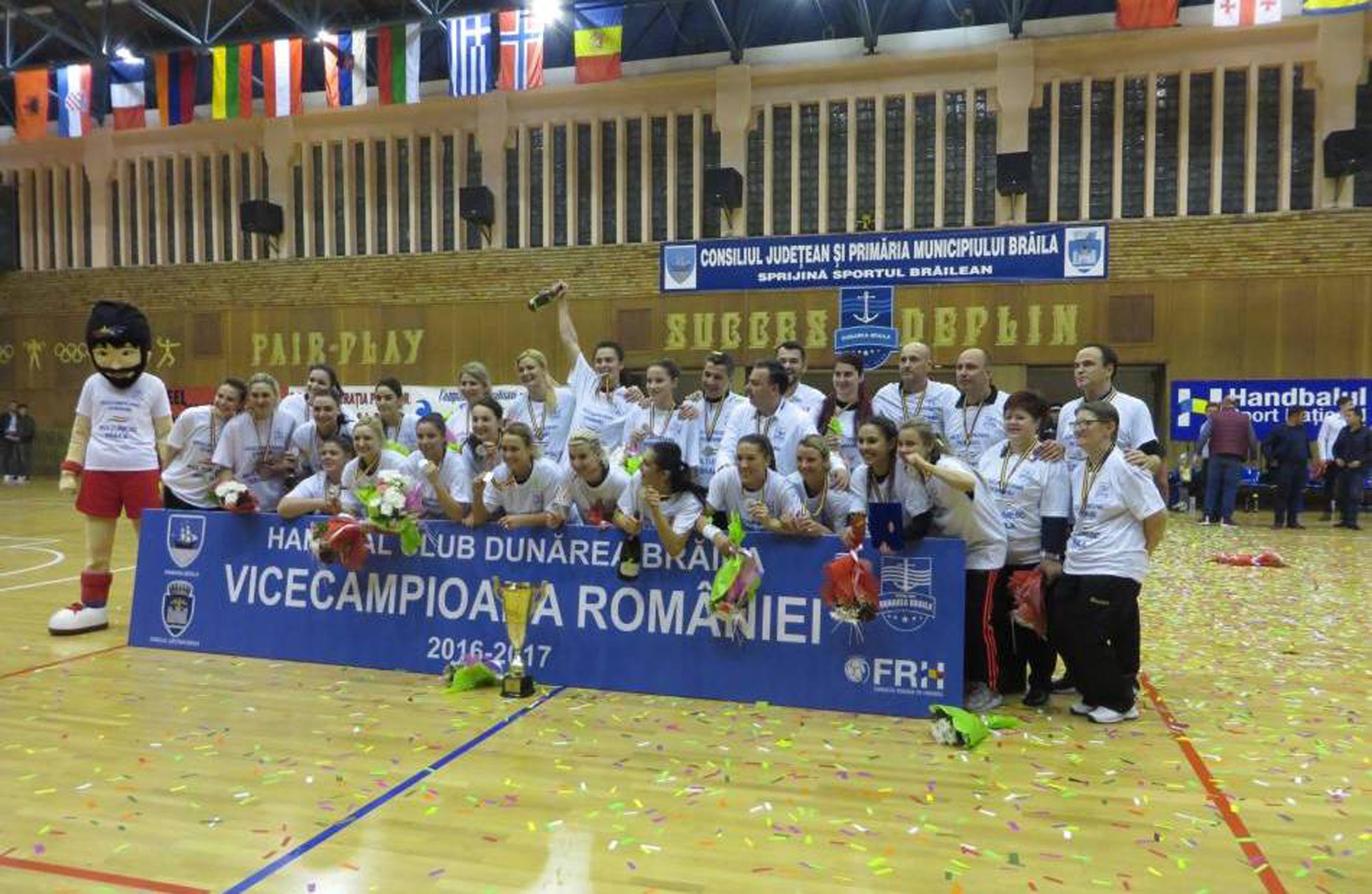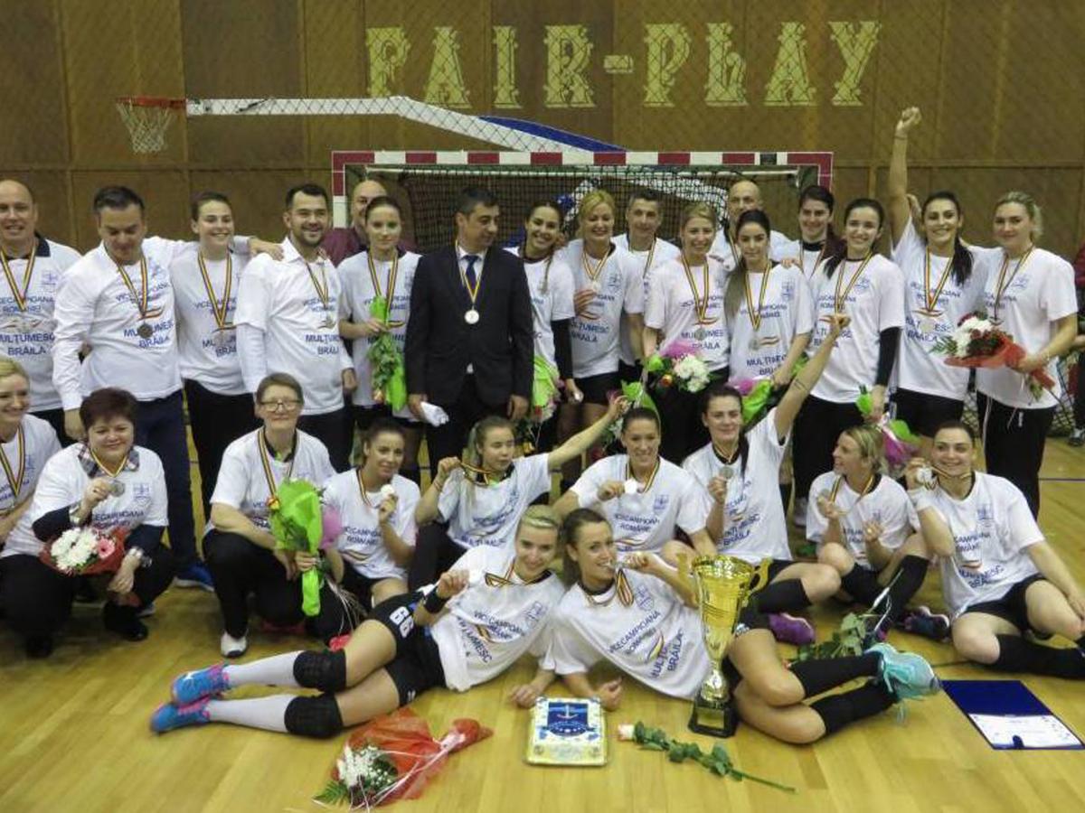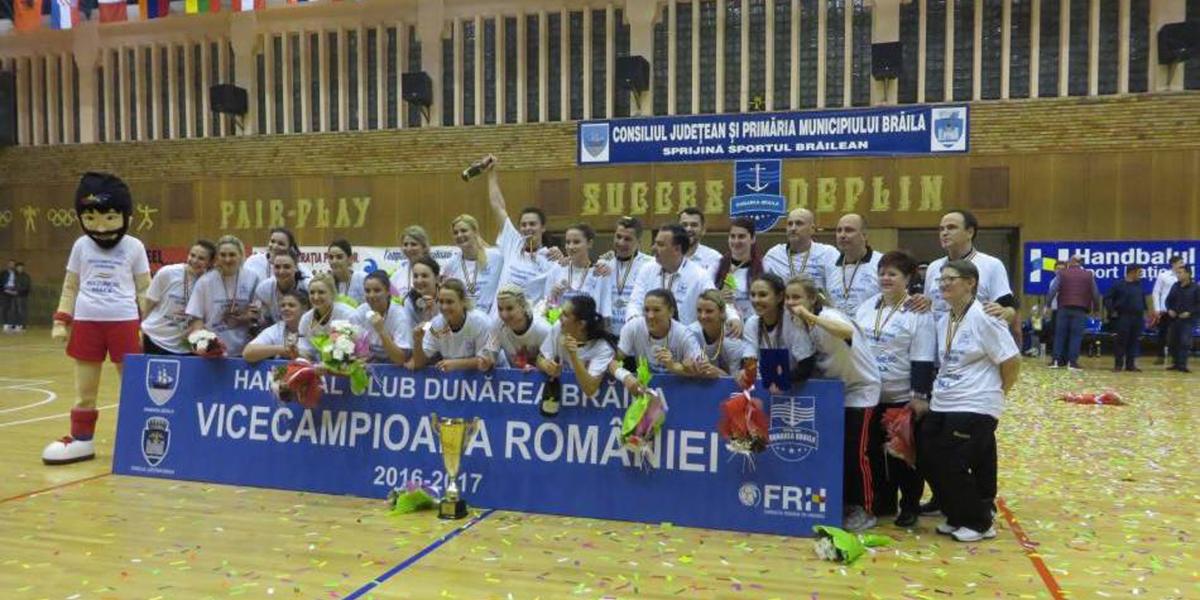Formaţia feminină de handbal HC Dunărea a scris, luni seara, o nouă pagină glorioasă în istoria clubului şi a oraşului nostru, devenind în premieră vicecampioană naţională, după victoria la pas obţinută în faţa echipei HCM Rm. Vâlcea. Este rezultatul muncii tuturor celor implicaţi la club, conducere administrativă, tehnică, a jucătoarelor şi, nu în ultimul rând, al celor care au susţinut financiar echipa: Consiliul Judeţean şi Primăria. În faţa unei săli arhipline, handbalistele pregătite de Costică Buceschi şi Cristian Preda au dat un spectacol de gală în faţa oltencelor, iar la finalul partidei, chiar dacă mai este o etapă de disputat din acest campionat, jucătoarele au primit din partea FRH mult râvnitele medalii de argint. Totul s-a petrecut într-o atmosferă incendiară creată de cei aproximativ 2000 de spectatori. Fiesta s-a declanşat cu 2-3 minute înainte de finalul partidei, când jucătoarele care se aflau pe banca de rezerve s-au ridicat şi au început să sară de bucurie, iar după fluierul final a început marea petrecere din sală. Una firească, ţinând cont de faptul că o astfel de performanţă a unei echipe feminine brăilene s-a mai înregistrat doar în urmă cu aproximativ 24 de ani, când voleibalistele de la Braiconf pregătite de Jean Preda au obţinut medaliile de argint.