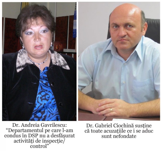 În acelaşi context, dr. Ciochină nu-şi explică de ce şefii de la Supraveghere şi Inspecţie nu au reclamat situaţia mai devreme şi găseşte că alţii sunt responsabili pentru situaţia creată: "Dar, Inspecţia?! Supravegherea?! Funcţia de inspector şef este funcţie de conducere, de decizie!". În aceeaşi discuţie, nominalizând-o expres pe dr. Lavinia Craioveanu, una dintre semnatarele petiţiei către Ministerul Sănătăţii, Ciochină a găsit că aceasta "s-a pus pe aceeaşi structură cu respectivii", cu aceia pe care el i-a mustrat în scris, iar dr. Craioveanu i-a apărat. În tăvălugul discuţiei a intrat şi dr. Andreia Gavrilescu, despre care am aflat că a condus până în martie 2015 Compartimentul Supraveghere, timp de 16 ani, şi care s-a considerat, ieri, lezată de afirmaţiile doctorului Ciochină, care i-a folosit numele pentru a arăta că foştii angajaţi n-ar fi întreprins nimic, deşi aveau putere de decizie. Dr. Gavrilescu arată că nici n-avea atribuţii de control: "Departamentul pe care l-am condus nu a desfăşurat activităţi de inspecţie/control. Fiind medic epidemiolog, nu puteam desfăşura activităţi de medic igienist, ci doar coordona astfel de activităţi. În consecinţă, nu puteam desfăşura expertize igienico-sanitare. (...) În ceea ce priveşte monitorizarea surselor de apă, confirm că s-a purtat o corespondenţă stufoasă cu CUP Dunărea şi primării, în scopul monitorizării şi solicitării de către administratorii instalaţiilor a autorizaţiilor sanitare de funcţionare şi a celor cu derogare. (...) Din nefericire, autorizaţia cu derogare se acordă pentru instalaţii care au doar anumiţi parametri chimici depăşiţi, ceea ce nu a fost cazul în judeţul Brăila, până la data plecării mele din DSP". Altfel spus, dr. Gavrilescu reconfirmă că în cele 11 localităţi apa nu este potabilă.