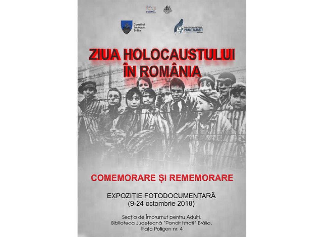 Tot ieri, Biblioteca Judeţeană „Panait Istrati” Brăila a marcat ziua de 9 octombrie printr-o expoziţie foto-documentară, „Ziua Holocaustului în România - Comemorare şi Rememorare”. Expoziţia este organizată de Sorin Neagu, bibliotecar în cadrul Secţiei de Împrumut pentru Adulţi şi este deschisă publicului în perioada 9 - 24 octombrie 2018.