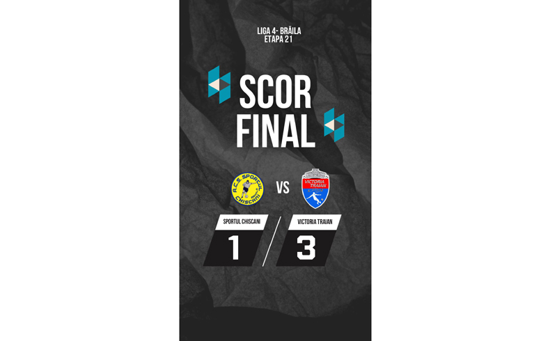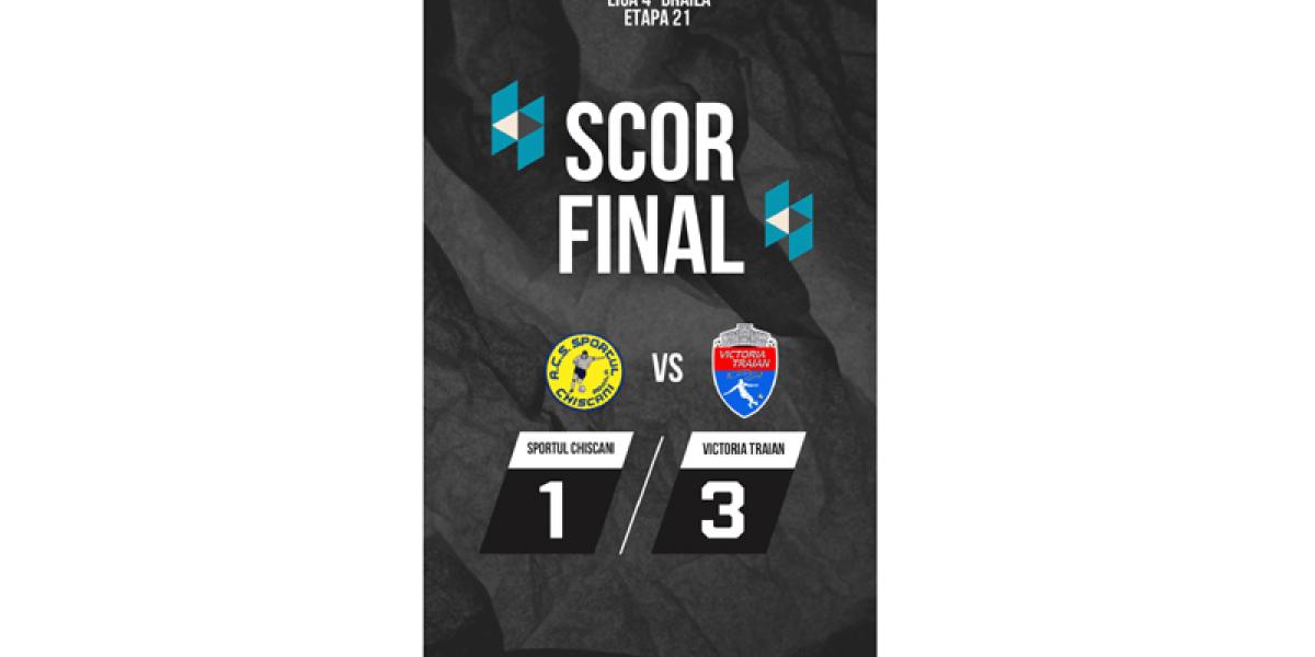 Victoria Traian și-a respectat blazonul și s-a impus cu 3-1 în deplasare la Sportul Chiscani. Echipa din Chiscani a deschis scorul, prin Chihaia (min. 16), dar la pauză tabela consemna un rezultat de egalitate, 1-1. A marcat pentru liderul campionatului Andrei Crăciun în minutul 42.
