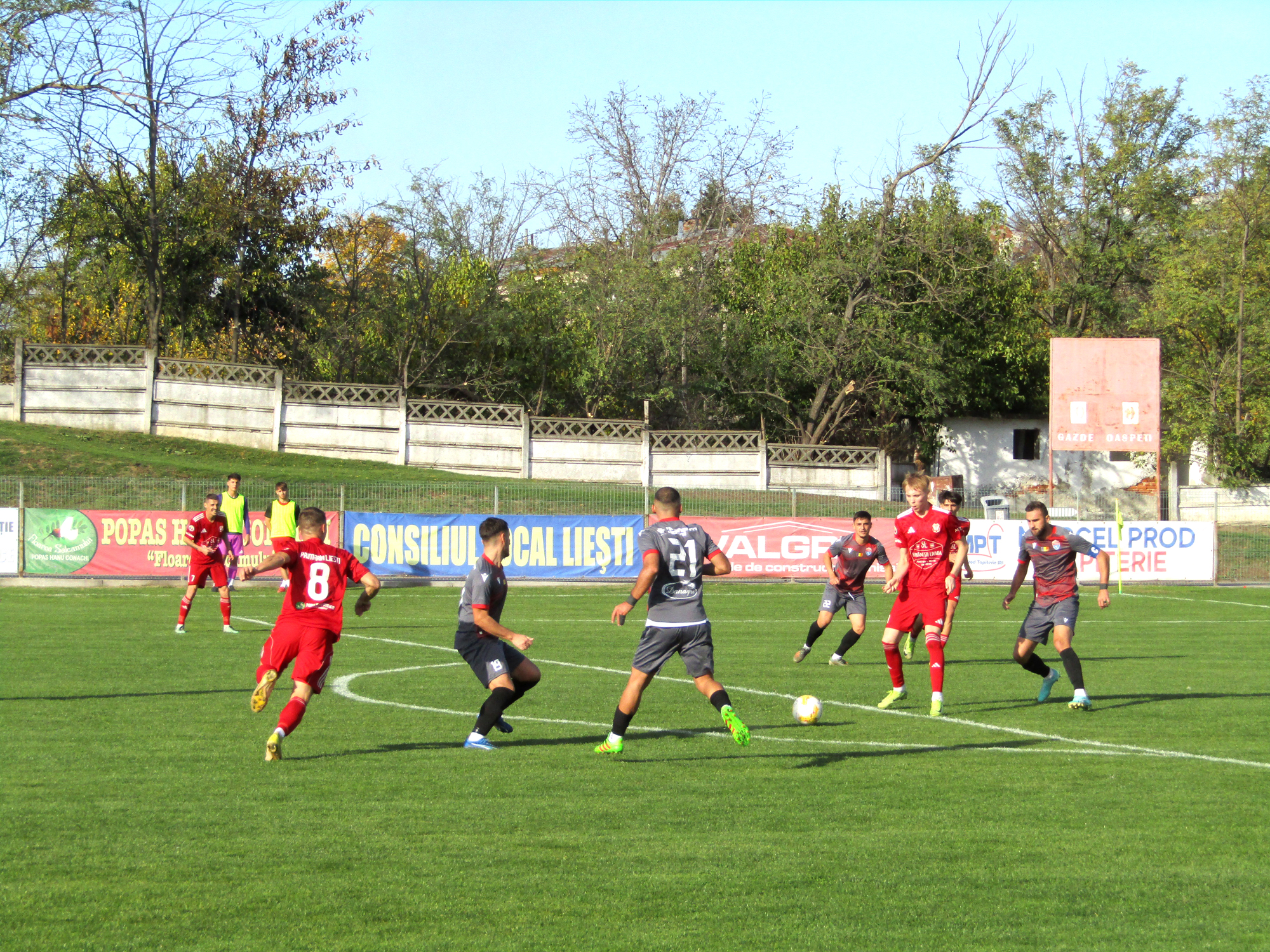 Dar echipa gazdă a întors rezultatul în favoarea sa, Petrișor Voinea a egalat în minutul 67, 2-2, și tot el a marcat golul de trei puncte în minutul 82, astfel că Sporting Liești s-a impus cu 3-2.