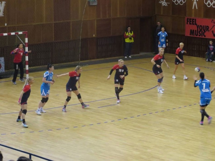 HC Dunărea a deschis scorul prin Ganichkina însă, pe fondul unui joc ezitant al brăilencelor, oltencele s-au distanţat la trei lungimi, 5-2, în minutul 8. Gazdele au alergat după egalare şi au reuşit-o în minutul 16 când Farcău a marcat pentru 7-7. La faza următoare Modovan a adus-o pe HC Dunărea în avantaj şi spectatorii se aşteptau ca din acest moment favoritele să preia iniţiativa şi să se desprindă la câteva goluri de adversarele lor. Însă jucătoarele pregătite de Aurelian Roşca au venit cu lecţia bine învăţată astfel că până la pauză jocul a fost echilibrat. Brăilencele au condus cu 11-9 în minutul 20 însă nu au mai reuşit să înscrie timp de şapte minute astfel că oaspetele au profitat şi au trecut în avantaj, 12-11. Moldovan a înscris în ultimul minut de joc, pentru 14-13, însă Tiron a restabilit egalitatea la faza imediat următoare şi a stabilit scorul primei reprize, 14-14.