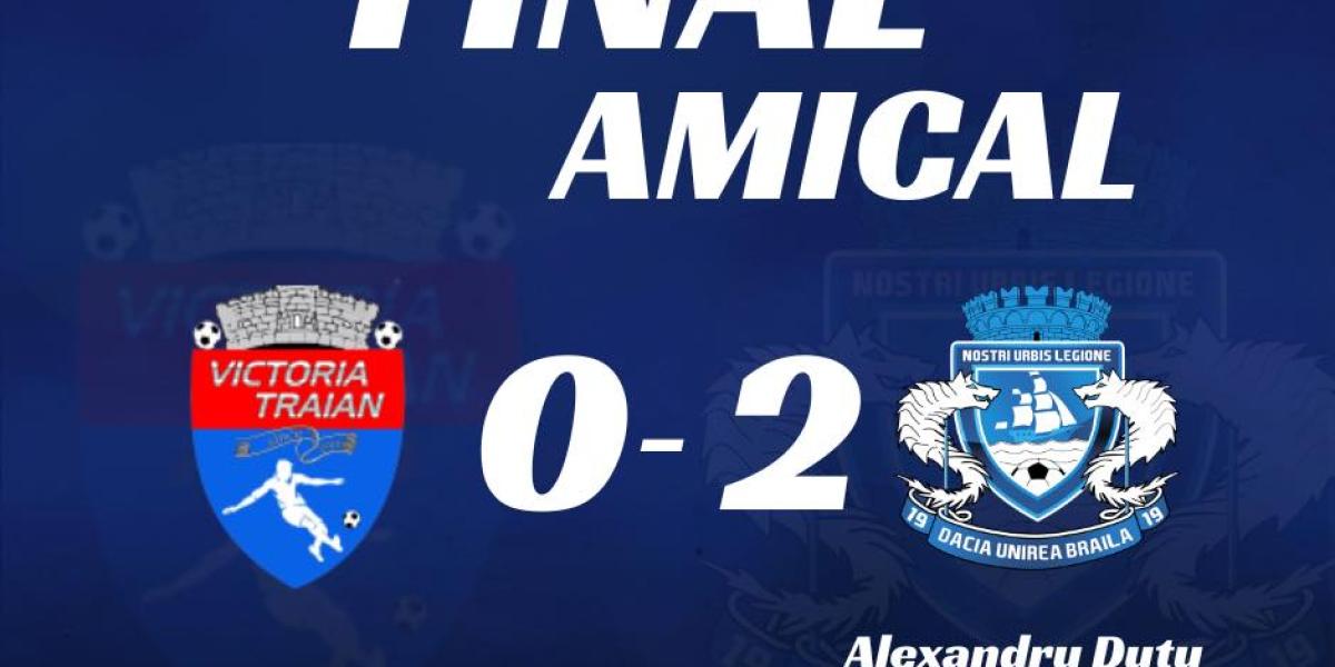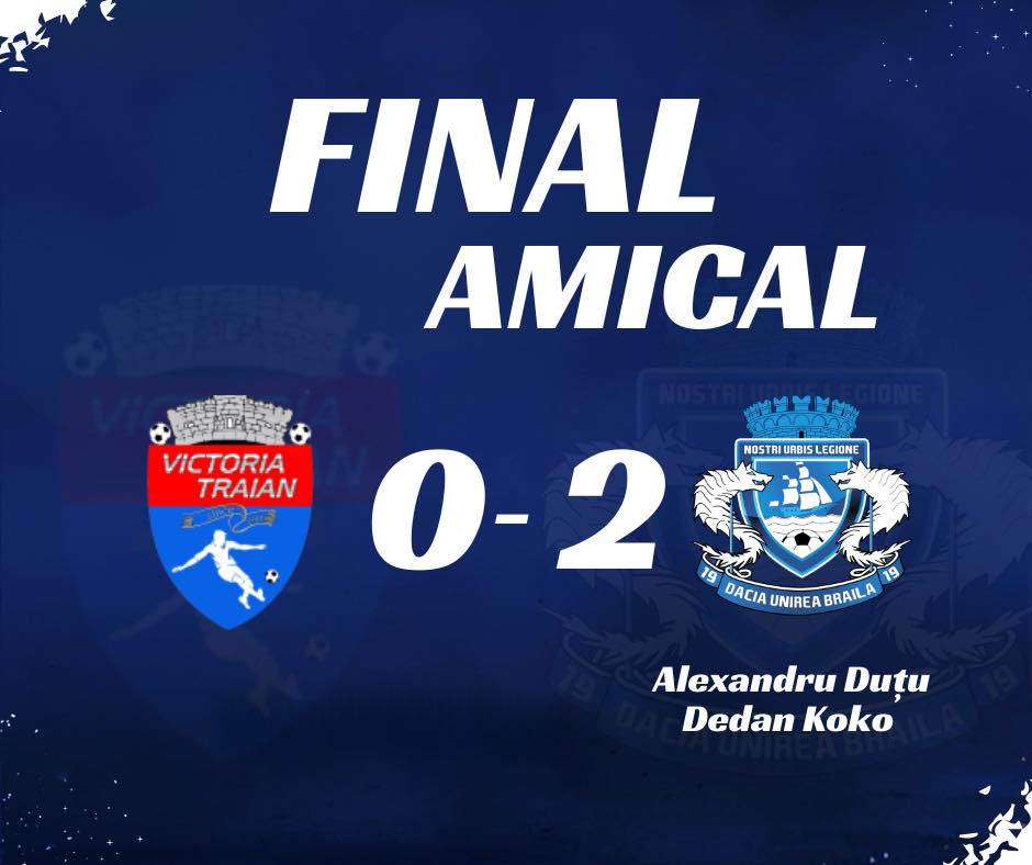 Dacia Unirea a câștigat cu 2-0 amicalul susținut în deplasare la Victoria Traian, echipa care a încheiat sezonul trecut de Liga a IV-a pe locul al doilea și care are în componență jucători care au cochetat cu Liga a III-a și chiar cu Liga a II-a.