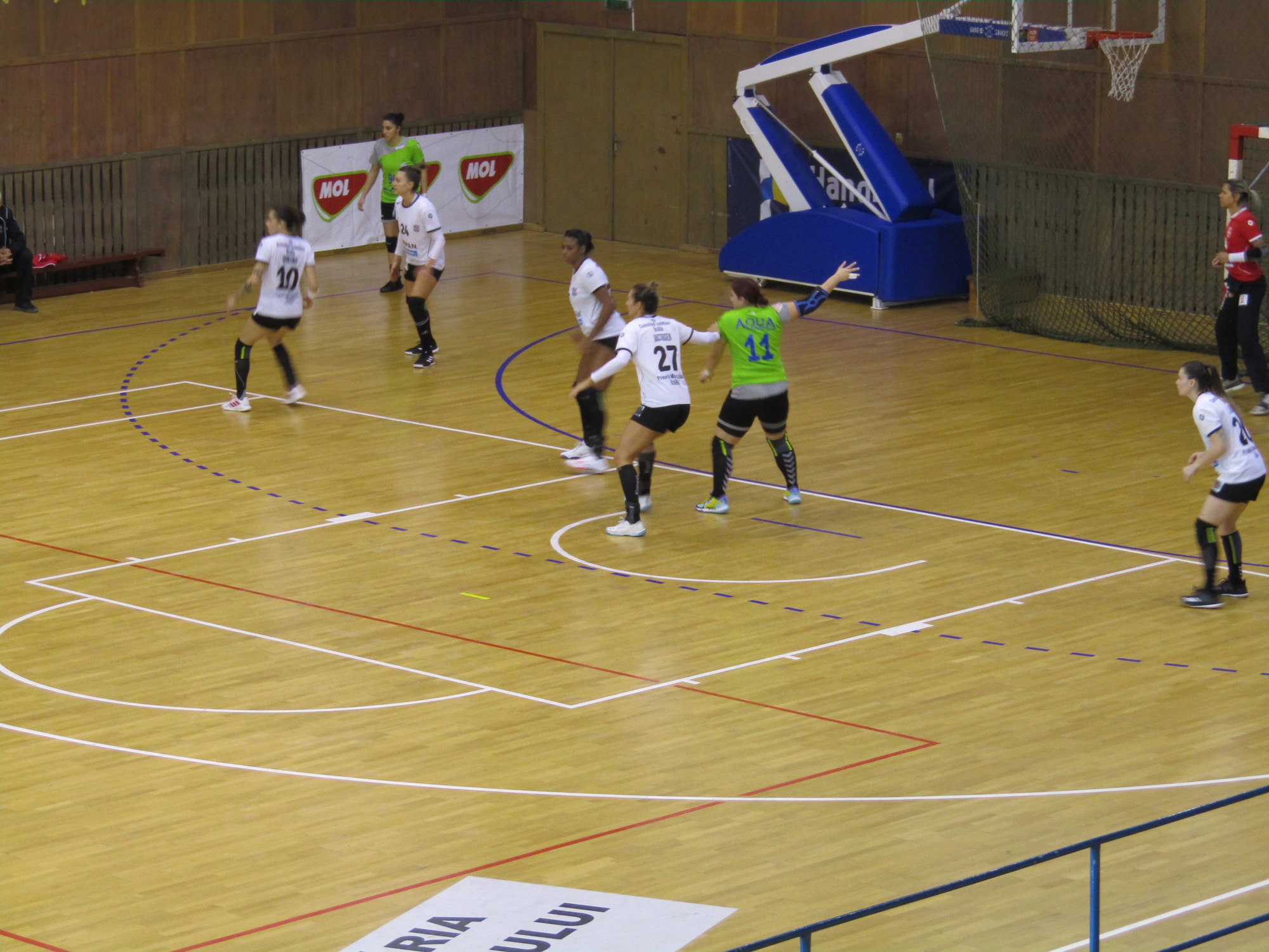 Doar cinci minute jocul a fost echilibrat. De la 2-2, echipa gazdă s-a desprins la 4-2, iar în minutul 14, după o “dublă” semnată de Aneta Udriștoiu, HC Dunărea conducea cu 7-3. După trei goluri marcate de Rodrigues, Kurtovic și Tamires, echipa pregătită de Morten Soubak s-a desprins la opt goluri, 16-8, în minutul 30. Tot Kurtovic a marcat la ultima fază și, după primele 30 de minute, formația de la Dunăre conducea cu 17-9.