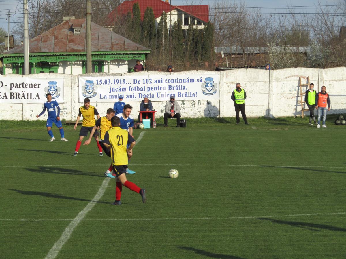 Dacia Unirea s-a impus cu 4-0, în derby-ul cu a patra clasată, Sporting Liești. Partida era câștigată încă după primele 45 de minute, pentru că la pauză, echipa antrenată de Florentin Petre conducea deja la un scor de neprezentare, 3-0. Cu toate că nu a marcat, Patrick Petre a fost jucătorul meciului pentru că a dat patru pase de gol.