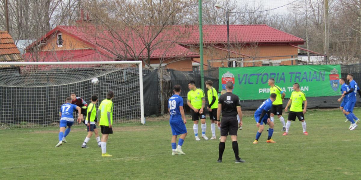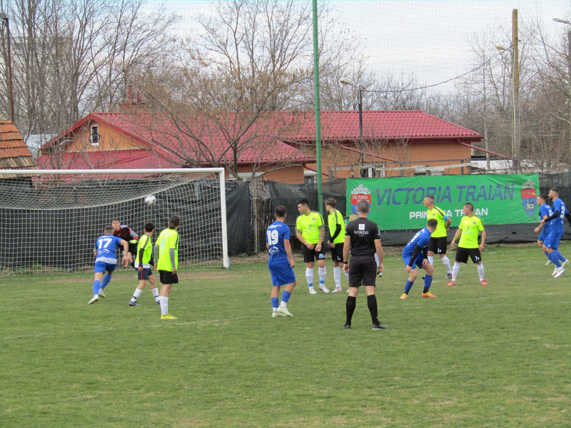 În formula Olaru – Drăguț, Preda, Stănciulescu, B. Dumitru – Ursu (transferat de la Viitorul Ianca), Bârlădeanu, venit de la Sporting Liești, care a evoluat și la Oțelul Galați, P. Ioan - I. Șerbănescu, Goleanu, Câmpeanu, venit de la Buzău, Victoria Traian a deschis scorul în minutul 15, prin Goleanu. Acesta a trimis mingea în vinclu, cu o foarfecă pe spate, după o centrare perfectă a lui Drăguț. Tot Goleanu a dublat avantajul echipei gazdă, în minutul 25. Andrei Câmpeanu, jucătorul care a evoluat la Buzău, Oțelul sau CSM Rm. Sărat a stabilit scorul primei reprize, 3-0, pentru Victoria Traian. La trei minute de la reluare, Paul Ioan a marcat pentru 4-0, iar în minutul 73 scorul a luat proporții, 5-0, după reușita semnată de Alexandru Balaban. Goleanu a realizat hat trick-ul în minutul 75 și era 6-0 pentru echipa gazdă. Mogoș (min. 77) și Cireașă (min. 85) au mai înscris pentru Victoria Traian care s-a impus cu 8-0.