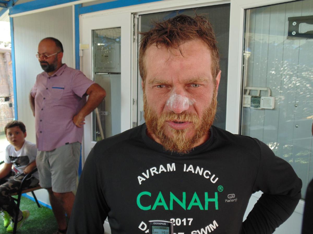 “Vă mulţumesc foarte mult pentru primirea călduroasă. Am ajuns într-o zonă a mea de suflet, mă refer la Brăila, Galaţi, Tulcea, şi simt cum mi se reîncarcă bateriile. Am avut parte şi de o mare surpriză, aceea de a fi întâmpinat de presa locală care a venit împreună cu prietenul meu Mihai Pascu. Aceştia au venit cu vaporaşul şi m-au întâmpinat, iar faptul că mi s-a pus hitul expediţiei «Treceţi batalioane române Carpaţii», pe care l-am cântat apoi împreună mi-a dat încredere că pot duce la capăt acest proiect al meu. Pot spune că a fost una dintre cele mai plăcute experienţe ale mele pe acest traseu foarte lung. Ce să spun, a fost greu, au fost multe obstacole, iar când dai de greu îţi trece prin minte şi acel gând al abandonului, însă am reuşit să trec peste toate aceste probleme şi, iată că am ajuns la Brăila şi mai am puţin şi îmi îndeplinesc visul. Nimeni din lume nu a înotat până acum fără costum de protecţie. Dacă reuşesc, această performanţă a mea devine una mondială. Însă eu nu o consider o performanţă a mea. Ci una a românilor”, a declarat Avram Iancu.