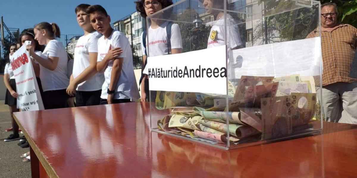În paralel, şi alţi oameni se organizează pentru a veni în sprijinul adolescentei. Cea mai recentă iniţiativă aparţine unui brăilean şi va avea loc vineri, 13 septembrie, la ora 19:00, pe platoul din faţa Primăriei, acolo unde sunt aşteptaţi toţi cei care vor să facă o mică donaţie pentru Andreea.