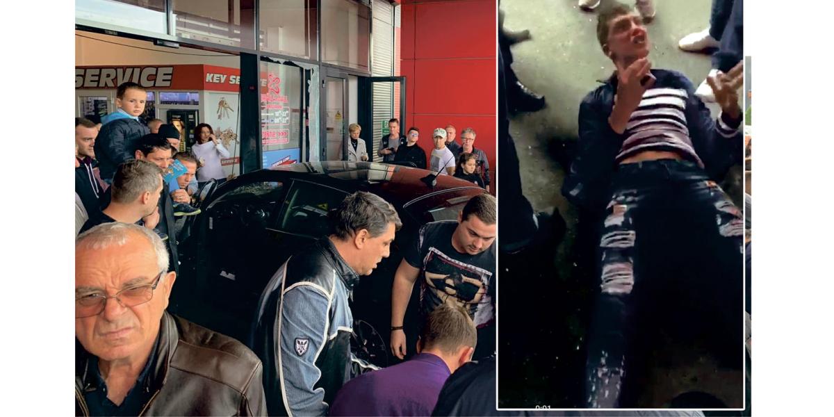 • un tânăr de numai 20 de ani a intrat cu o maşină, pe care chipurile ar fi vrut s-o cumpere, direct într-un grup de oameni ce tocmai ieşeau din mall • beat şi posibil drogat, noroc cu stâlpii de beton amplasaţi în faţa uşilor de acces, altfel totul s-ar fi putut transforma într-un adevărat carnagiu • dar chiar şi aşa, numai la intrarea în hipermarket el a rănit şapte persoane, dintre care doi copii • şi nu au fost singurele victime, aflat cu autoturismul “la probă”, el l-a înjunghiat mai întâi pe vânzător şi l-a abandonat, apoi a intrat cu maşina în două persoane pe Şoseaua de Centură • ulterior, a ales mall-ul din Vărsătura • două dintre victimele tânărului au fost operate, iar celelalte sunt în stare stabilă • pus la pământ de câţiva clienţi, Marius Valentin Parfenie, autorul acestui grav incident, şi-a motivat gestul: “Trebuie să curgă sânge în ţara asta!”