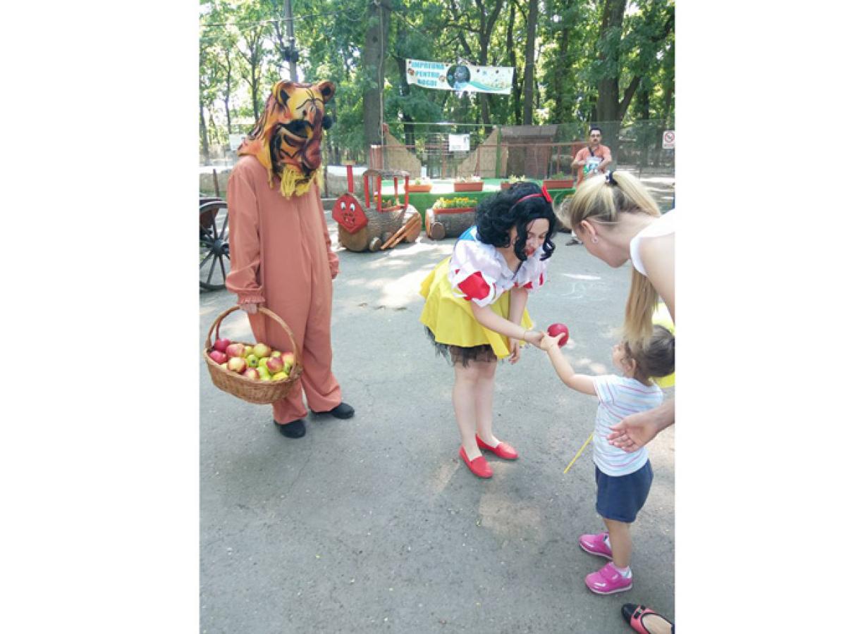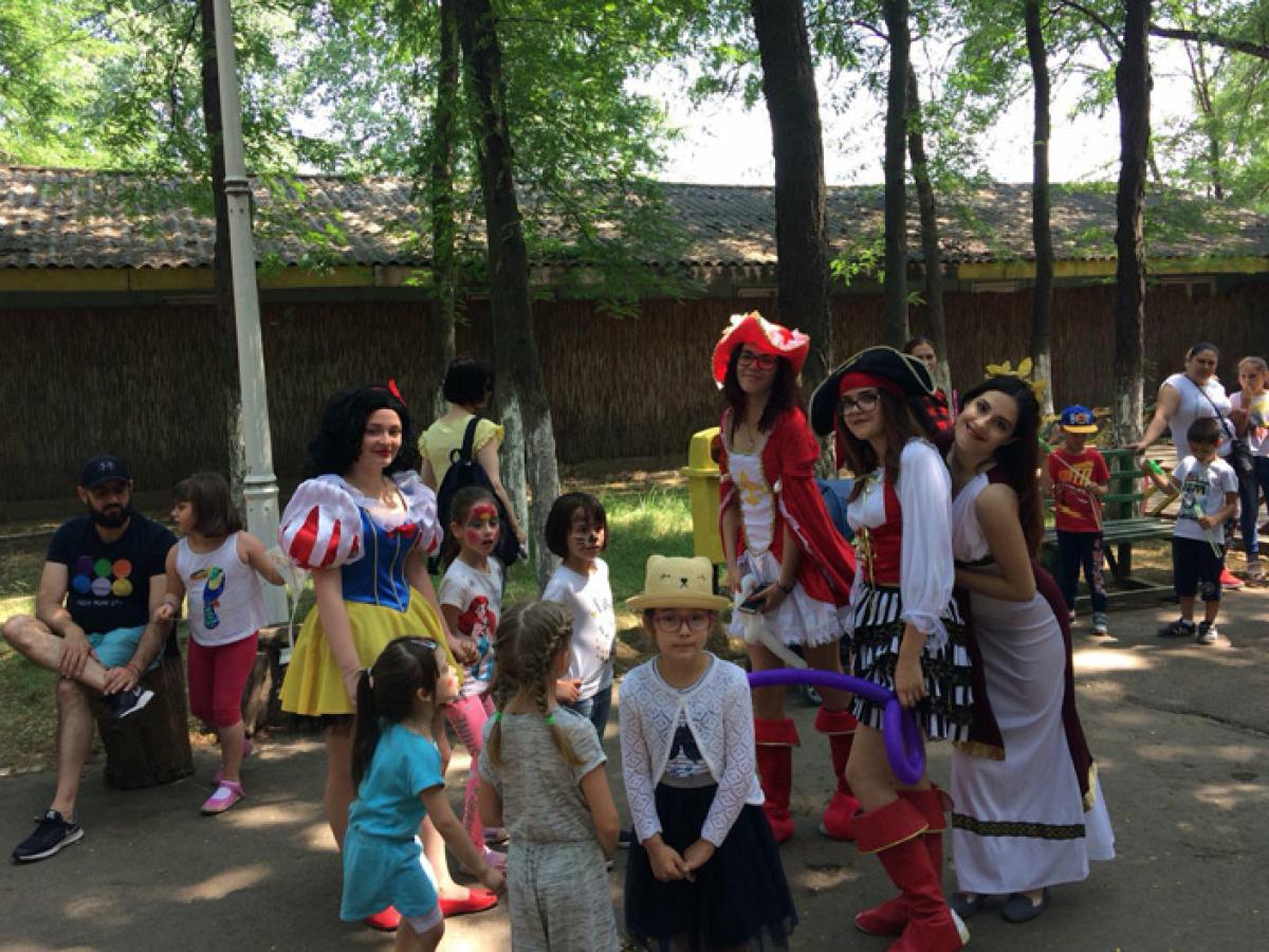 Puţin după ora 13.00, la Grădina Zoologică şi-au făcut apariţia personajele de basm, în frunte cu Albă că Zăpadă şi Prinţul, iar pe chipul copiilor puteai zări numai zâmbete când alaiul trecea pe lângă ei. Chiar dacă cei 7 pitici din poveste au lipsit de 1 Iunie, aceştia muncind de zor la mina de diamante, Albă că Zăpadă a fost în permanenţă înconjurată de mulţimea de pitici venită să petreacă Ziua Copilului la Zoo. Toţi au primit din partea ei mere gustoase şi sănătoase. Alături de personajele din poveşti, senzaţie au făcut şi membrii Trupei “Zgubi”, o gaşcă de elevi frumoşi şi voioşi, care i-au animat pe cei mici cu jocuri, muzică şi dans, aceştia având grijă ca piticii să se distreze pe cinste şi să râdă cu gură până la urechi.