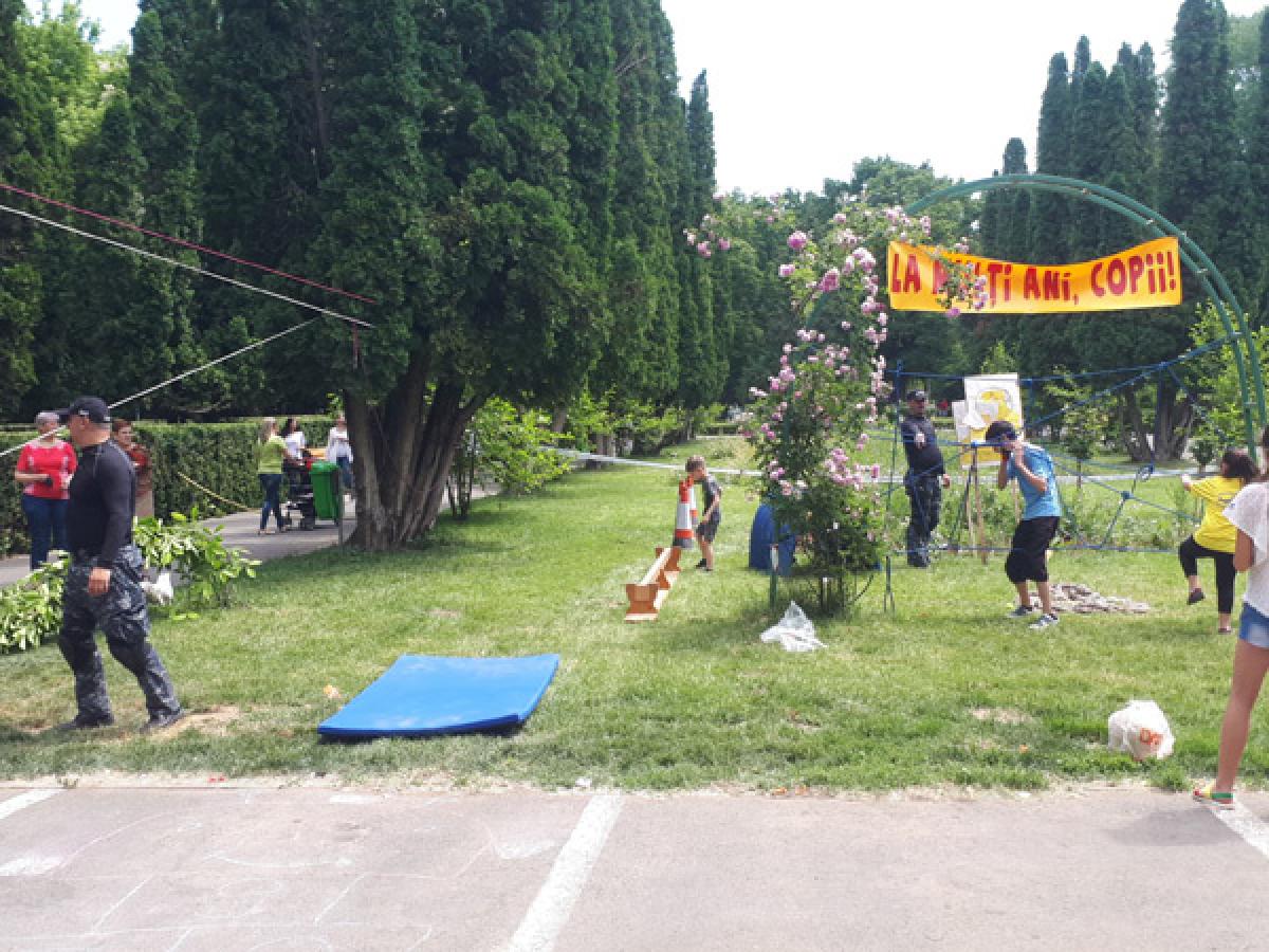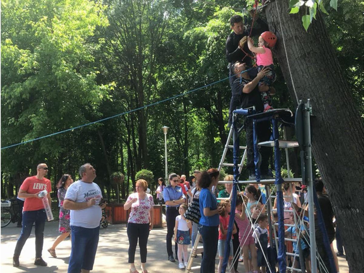 Tiroliana şi traseul sportiv gândite de Serviciul de Acţiuni Speciale au făcut valuri. Sub atenta supraveghere şi implicare a lucrătorilor de la SAS, copiii au “zburat” deasupra parcării Kiselef. După ce coborau din tiroliană, traseul continua cu Şotronul, tumbe pe saltea, jaloane, mers pe bancă, aruncarea mingei la coş şi aruncarea unei mingi de tenis la ţintă. La finalul traseului, jucătorii au fost hidrataţi cu apă şi energizaţi cu bomboane. Numai că, surpriză, cei mici parcurgeau traseul de mai multe ori, având o sursă de energie infinită şi o poftă mare de aventură.