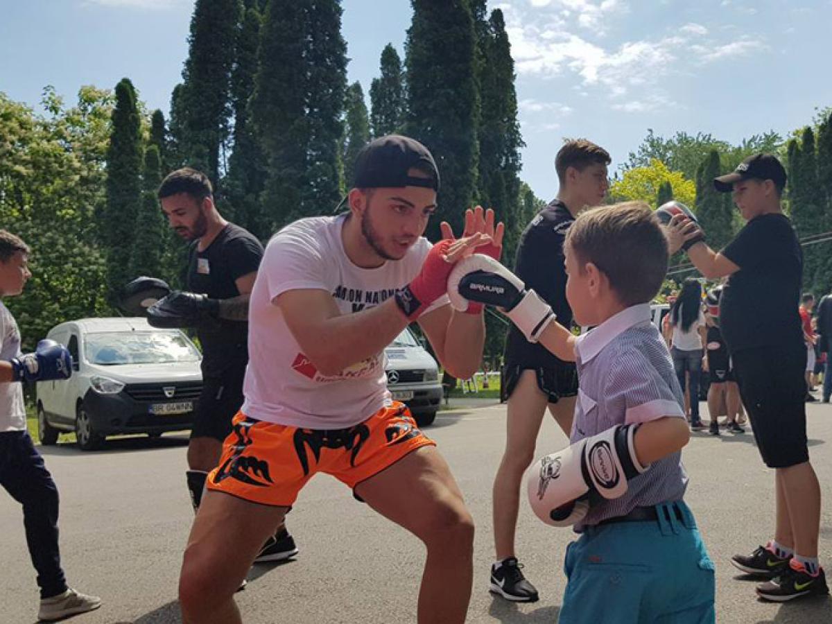 Pregătirile au început încă de la ora 9.00, iar la 10.00, mini-parcul de aventuri deja prinsese viaţă. Programul a început cu un mic exerciţiu demonstrativ de kickboxing al celor de la Club Sportiv “Urban Warrior Gym” Brăila. Astfel, copiii au aflat că acest sport poate fi practicat atât pentru performanţă, cât şi pentru autoapărare, sănătate şi dezvoltarea armonioasă a corpului. Cei de pe margine abia aşteptau ca exerciţiul să ia final, pentru a încerca şi ei câteva mişcări de kickboxing. Teo Mardar, campionul naţional al clubului, a fost atracţia celor mici, mai ales după ce au aflat că sportivul va participa în toamnă la Campionatele Europene de Kickboxing K1 din Italia. De la standul clubului, copiii au plecat cu diplome şi fluiere.
