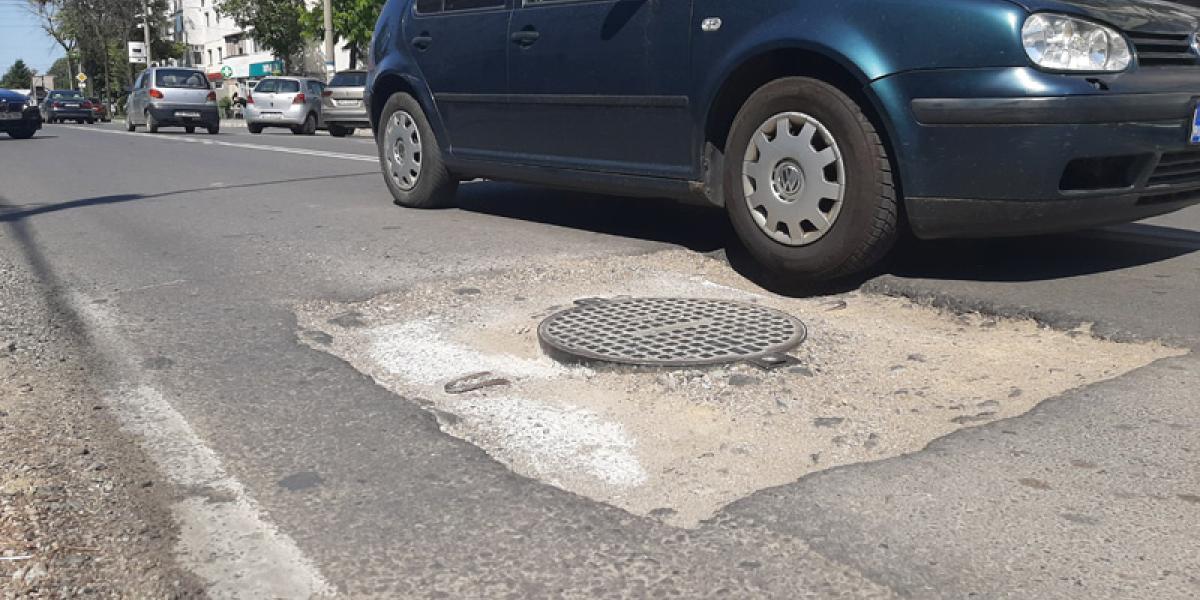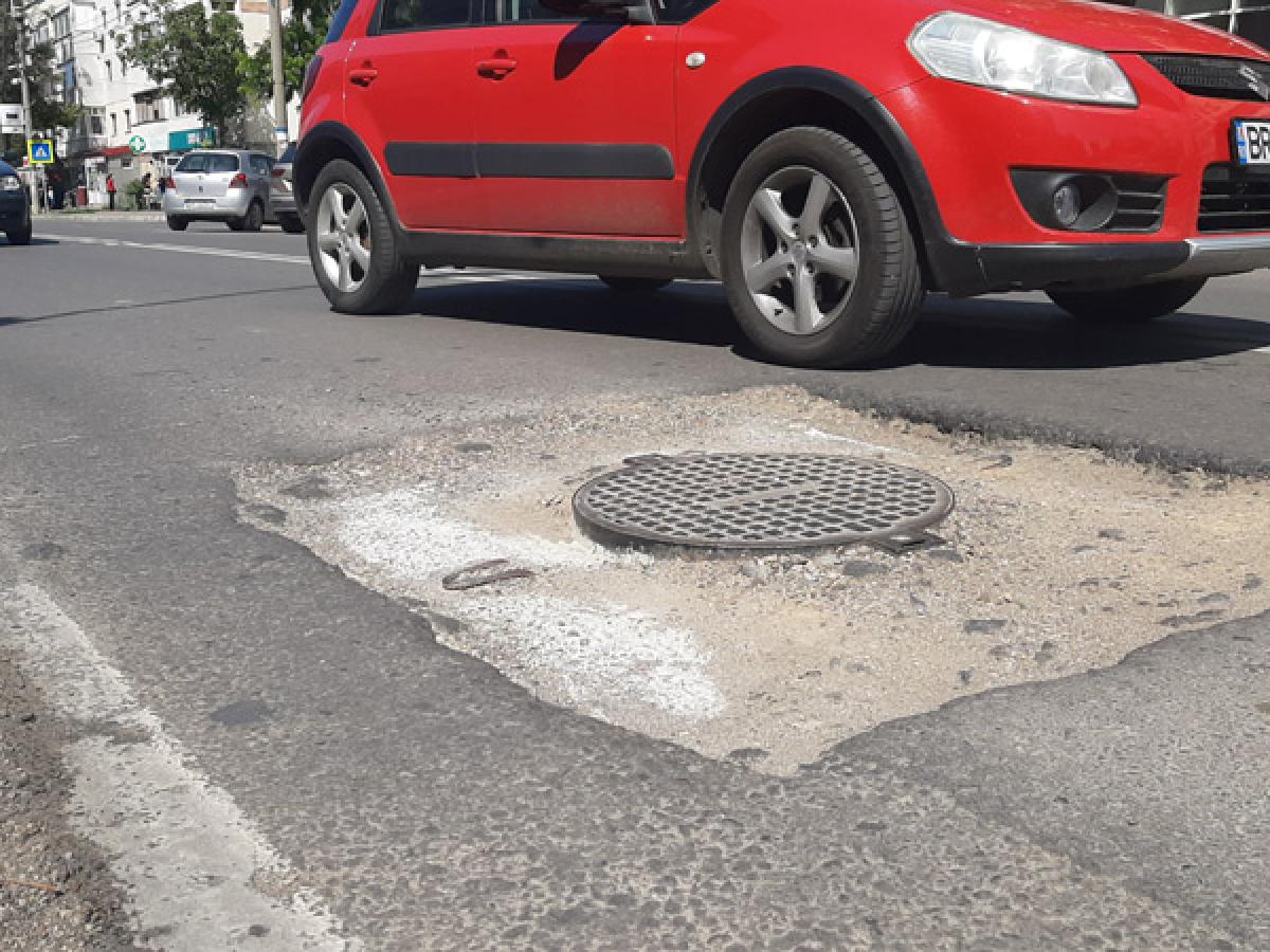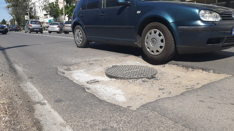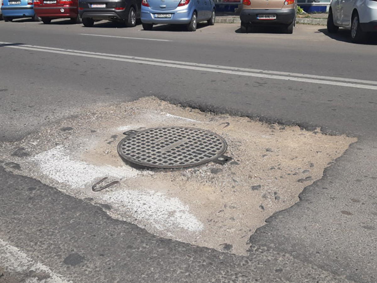 Respectiva lucrare a fost efectuată de Compania de Utilităţi Publice (CUP) Dunărea şi, în mod normal, tot aceştia ar fi trebuit, în cel mai scurt timp, să readucă nivelul asfaltului la cel al capacului canalizării. Cel mai probabil s-a folosit pietriş, aşa cum se poate observa în jurul gropii. Doar că ploile din ultima perioadă dar şi traficul autovehiculelor au făcut ca acesta să fie împrăştiat, ajungându-se astfel la situaţia actuală.