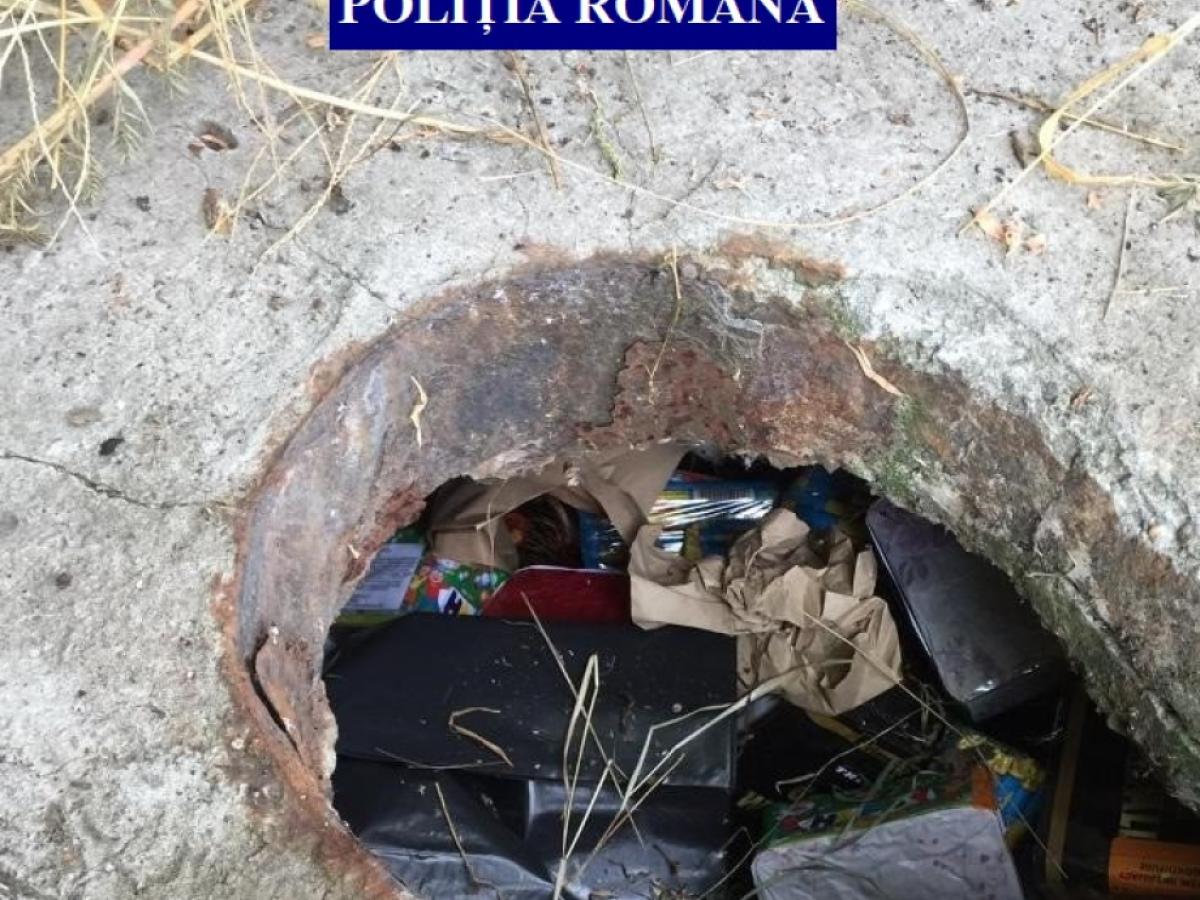 * poliţiştii au efectuat două percheziţii domiciliare pe raza municipiului Brăila şi au descoperit în mai multe magazii 182.000 de petarde, 5.000 de baterii şi tuburi de artificii şi 1.000 de candele romane * mare parte dintre acestea erau îngropate într-un spaţiu confecţionat din beton armat * oricum, astfel de articole pot fi folosite exclusiv de către pirotehnicieni