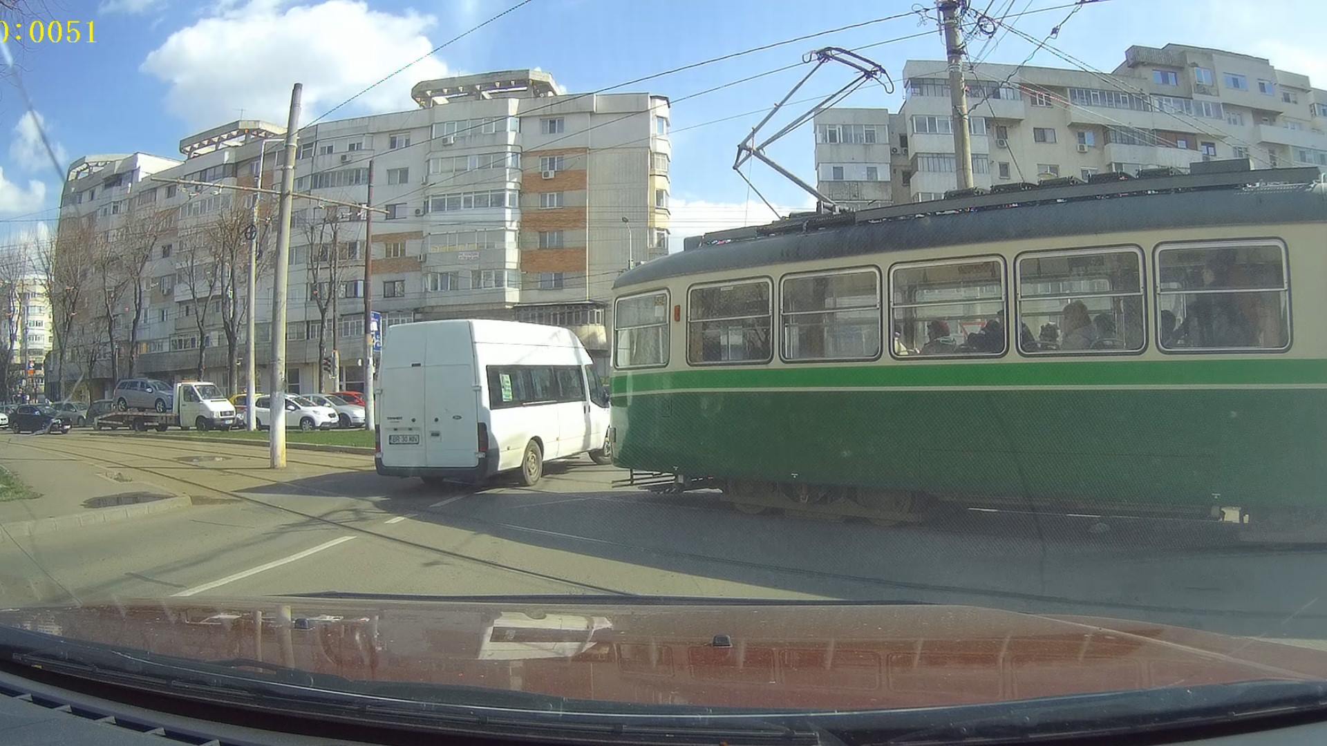 Un șofer de maxi-taxi a fost la un pas de impact cu un tramvai. Evenimentul a avut loc ieri, în Bariera Călărașilor. Microbuzul venea din cartierul Hipodrom, iar la intersecția cu linia de tramvai din barieră, șoferul a dat prioritate tramvaiului care venea din stânga, s-a angajat în traversarea liniilor, dar nu s-a asigurat și din dreapta. Noroc cu reflexele vatmanului care a sesizat intenția șoferului și a redus viteza, reușind astfel să oprească la timp . Șoferul de maxi-taxi s-a trezit efectiv în fața tramvaiului și a tras de volan stânga, intrând pe linia liberă.