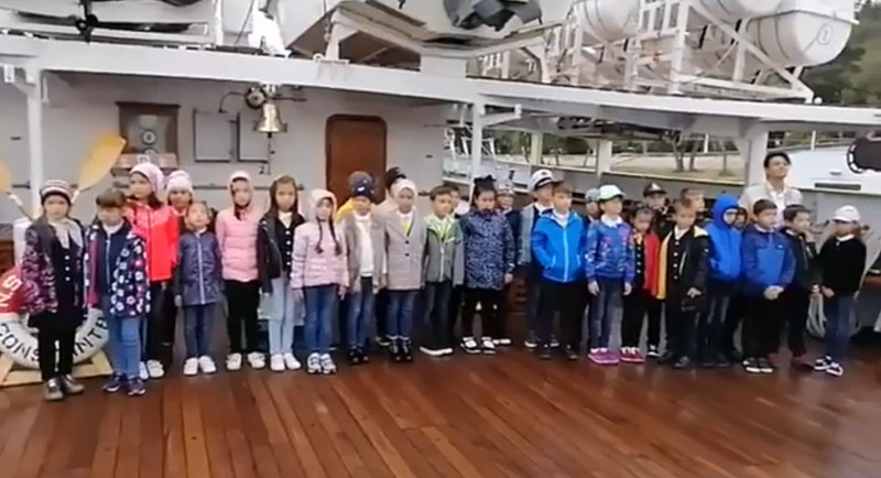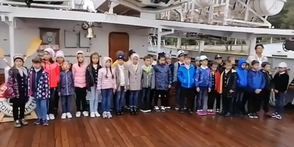 * acţiunea a avut loc vineri dimineaţă, copiii de la clasa I B primind cadouri din partea echipajului navei-şcoală