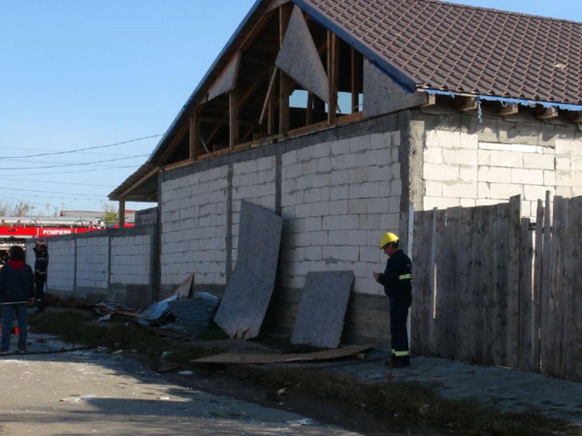 • ieri dimineaţă, pe fondul acumulărilor de gaze, o casă din cartierul Radu Negru, în care locuia o femeie de 54 de ani, s-a făcut praf în urma unei puternice explozii • pereţii au căzut, iar totul în casă s-a aprins, pompierii intervenind imediat pentru a evita ca focul să se extindă • oricum, locuinţele din zonă au fost afectate, la un imobil au pocnit geamurile, iar la casa de vizavi aproape s-a dărâmat podul • proprietara locuinţei, care îşi construise casă nouă după ce, acum 5 ani, aceasta îi fusese distrusă de inundaţii, a ajuns la spital cu arsuri pe aproape jumătate din corp