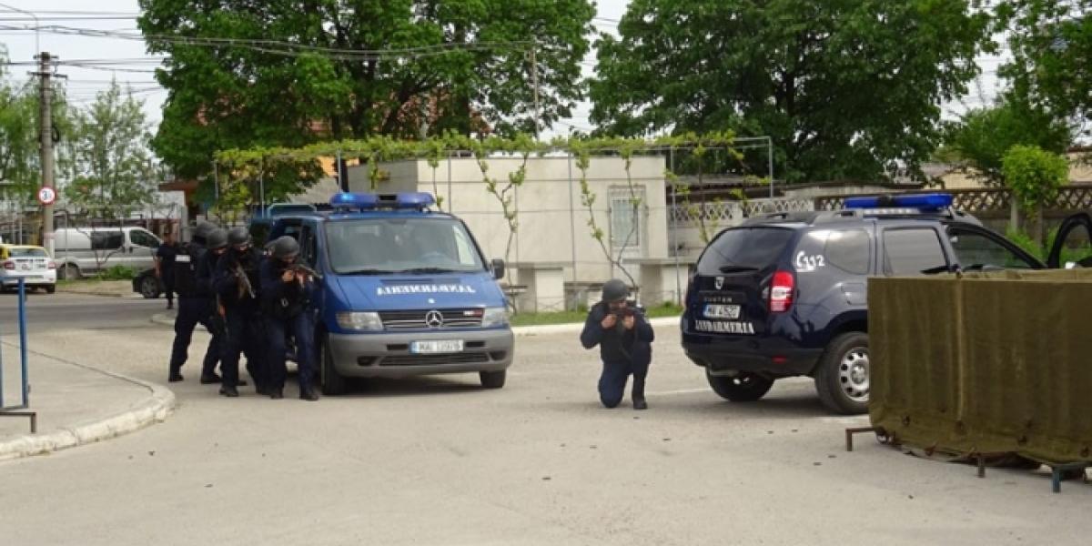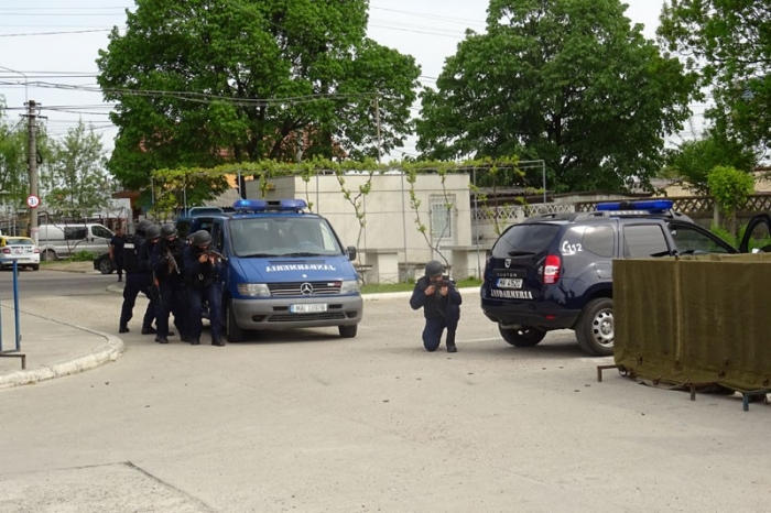 Ieri dimineaţă, mai multe focuri de armă s-au auzit la Inspectoratul de Jandarmi Judeţean (IJJ) Brăila. Doi "necunoscuţi" cagulaţi au intrat în curtea sediului, fiind înarmaţi cu pistoale-mitralieră. După ce au tras câteva focuri de intimidare, aceştia s-au ascuns în două "încăperi", crezând că vor scăpa de echipele Jandarmeriei, care au intervenit prompt. Cu mult tact, oamenii legii au intrat şi i-au imobilizat "necunoscuţii", după care i-au încătuşat şi i-au condus la dubă. Toate acestea s-au petrecut sub ochii a sute de copii, veniţi în vizită la inspectorat, cu ocazia Zilei Porţilor Deschise, organizată în cadrul Programului Naţional "Şcoala Altfel". Din fericire, vorbim de o simulare a unei intervenţii antiteroriste, totul făcând parte din programul dedicat zilei de ieri.