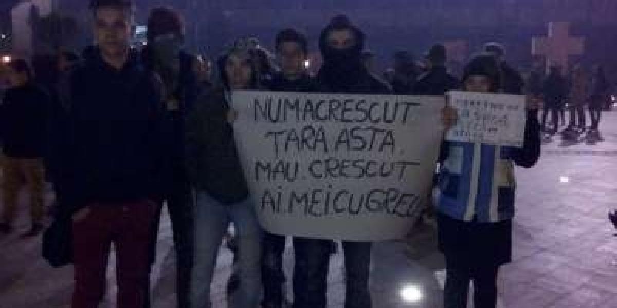 5.11.2015. ORA 19.00. Ei sunt inarmati cu vuvuzele si pancarte si striga din toate puterile lozinci anti-sistem. Tinerii s-au adunat in jurul micului altar ridicat in memoria celor care s-au stins la Colectiv si sunt tot mai vocali, pentru a-i atrage si pe alti braileni alaturi de ei. Vom reveni.