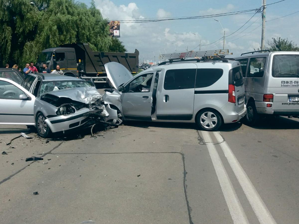 Potrivit poliţiştilor, un autoturism tip dubiţă, de la o firmă de pompe funebre, care circula dinspre Brăila spre Galaţi, a oprit pentru a vira la stânga. În acel moment, un alt auto Dacia Dokker, aflat în spatele său, care nu a păstrat distanţa corespunzătoare în mers, a lovit dubiţa în partea laterală stânga. Autoturismul Dacia a intrat apoi în coliziune cu un al treilea vehicul, marca Volkswagen, care circula din sens opus. În urma coliziunii au rezultat 4 victime, dintre care 3 adulţi şi un copil, care au fost transportate la spital pentru îngrijiri medicale. Ulterior însă, şoferul vinovat a mers şi el la spital, astfel că numărul victimelor s-a ridicat la 5. Circulaţia s-a blocat pe ambele sensuri.