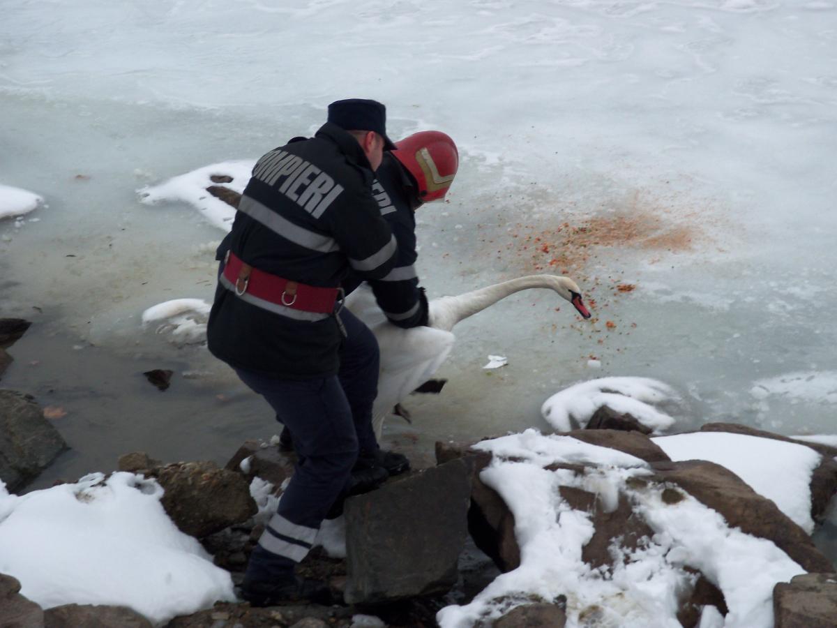 O familie de brăileni care se plimba pe Faleza Dunării în această după-amiază a văzut o lebădă îngheţată pe luciul apei. La câţiva metri mai în aval nişte copii au văzut o raţă sălbatică care nu se mişca. Si unii şi ceilalţi au sunat la numărul de urgenţă 112, iar un echipaj de pompieri s-a deplasat la faţa locului şi au recuperat cele două zburătoare din apele îngheţate ale bătrânului fluviu. Ambele au fost transportate la grădina zoologică pentru îngrijiri.