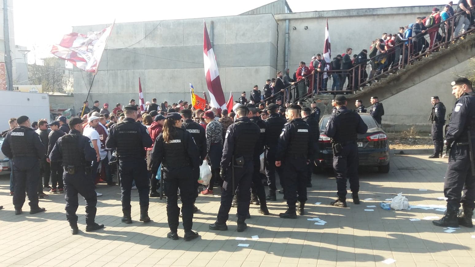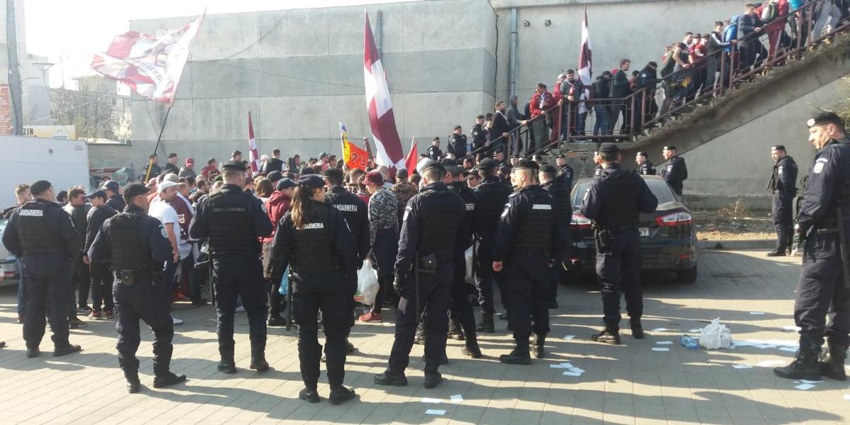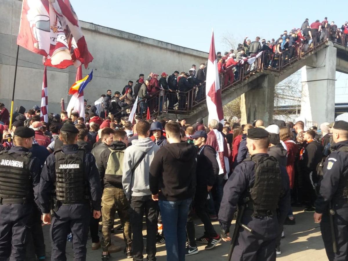 Meciul dintre Rapid București și Sportul Chiscani, care se joacă pe Stadionul Municipal din Brăila, a adus peste 350 de suporteri ai echipei bucureștene în orașul nostru. Galeria a fost așteptată în gară de către jandarmii Grupării Constanța, apoi condusă, pe jos, până la stadion.