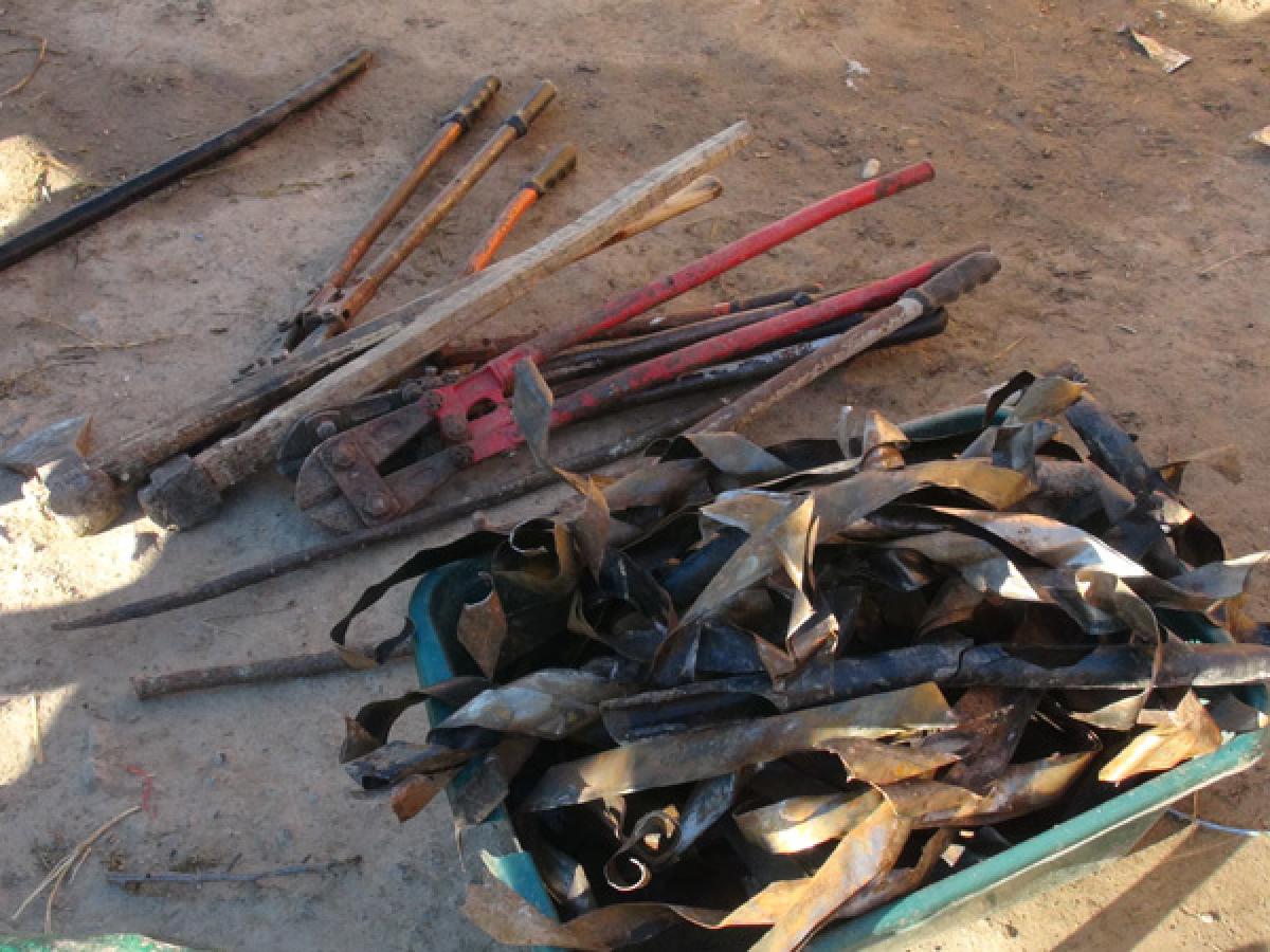 Cum era de aşteptat, în locuinţele persoanelor suspectate de furturi de fier vechi s-au descoperit adevărate depozite de unelte: drujbe, unelte electrice, ţevi metalice, a căror provenienţă nu a putut fi justificată, fiind ridicate de poliţişti pentru verificări. Multe dintre sculele găsite în case aveau o destinaţie clară: erau folosite pentru comitererea furturilor.