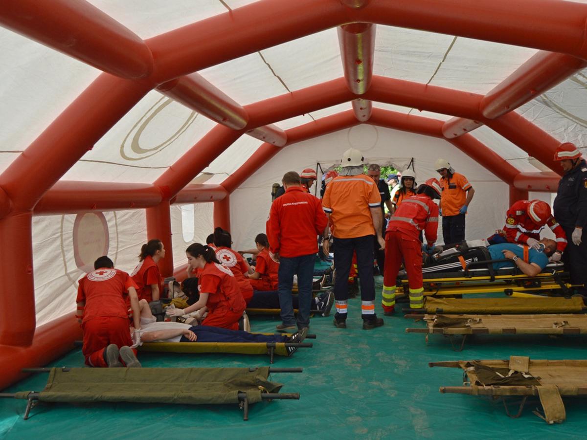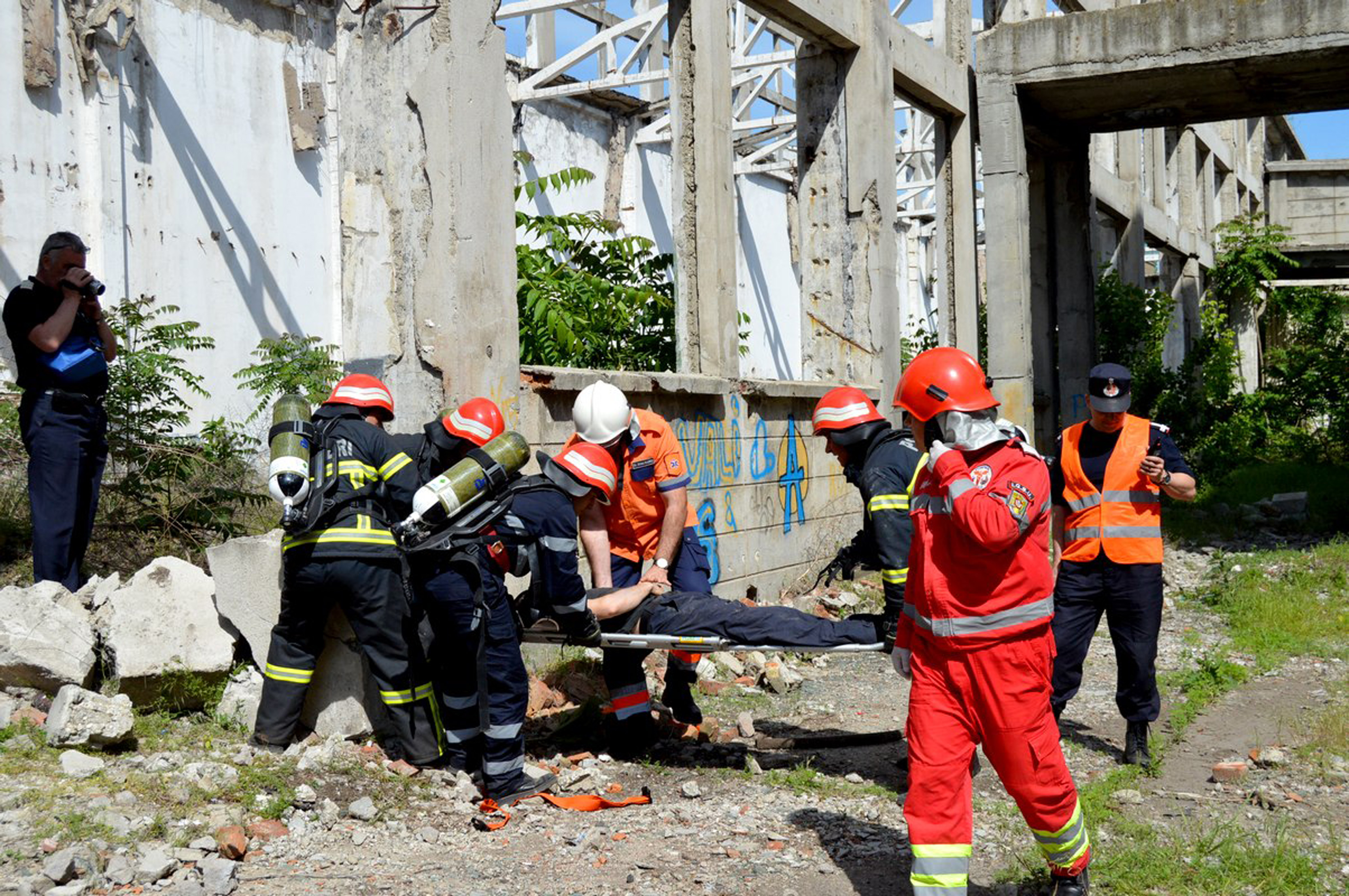 • scenariul exerciţiului a fost axat pe intervenţiile la prăbuşirea de construcţii, iar fostele hale unde pe vremuri se produceau plăci aglomerate din lemn s-au dovedit a fi foarte utile pentru genul acesta de acţiuni