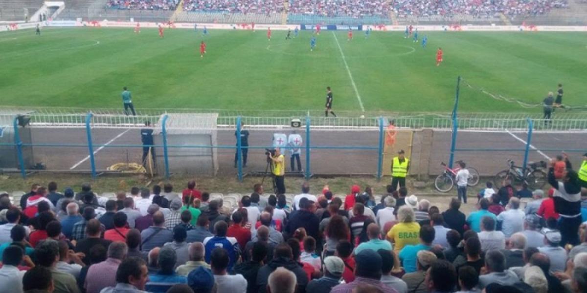 Băieţii noştri conduc, la pauză cu 1 -0, în urma unui gol marcat de Cosmin Necoară, din penalty, în minutul 39. Tribunele sunt pline, circa 15.000 de brăileni fiind prezenţi la meci.