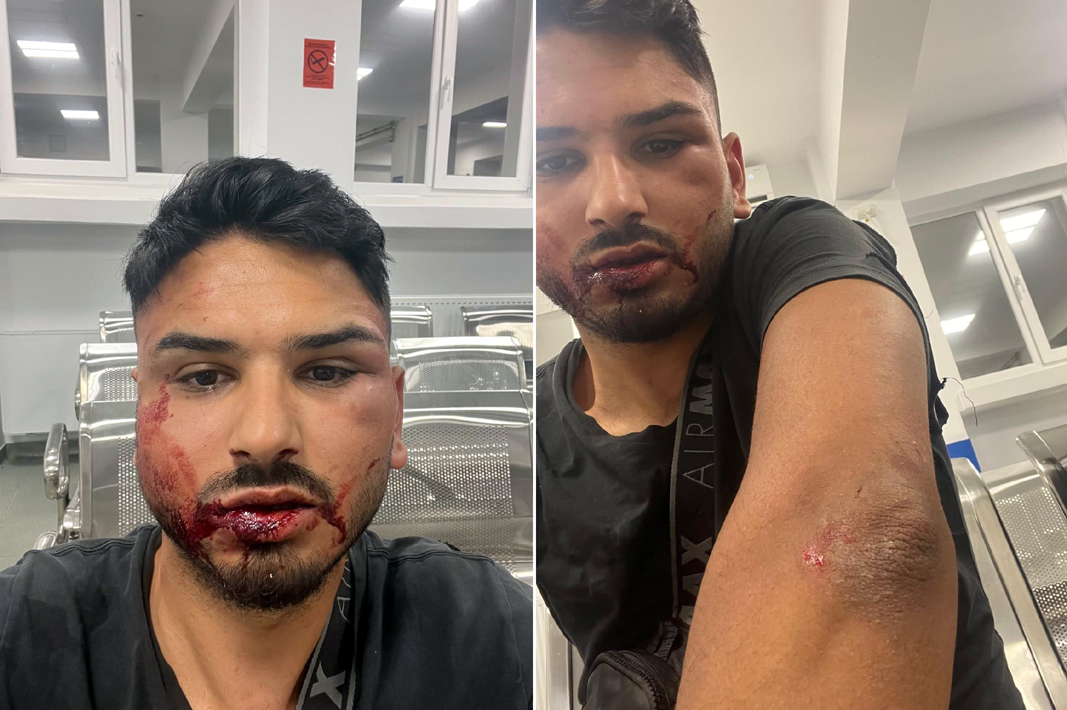• un tânăr de 26 de ani, fără antecedente penale, care lucrează ca livrator Glovo, spune că s-a trezit luat la bătaie de mai mulți indivizi • în noaptea de 10 august, Marius Constantin a fost atacat și bătut de peste nouă persoane, iar în urma agresiunii a rămas cu urme vizibile și leziuni confirmate prin certificat medico-legal • tânărul spune că a avut o discuție telefonică aprinsă cu o rudă, în urma căreia a fost amenințat, iar el a răspuns cu injurii • la scurt timp, în curtea lui au intrat fiica rudei cu care se certase la telefon, precum și iubitul acesteia • cei doi ar fi atacat-o pe prietena tânărului, care este minoră • aceasta a fost lovită cu pumnii și trasă de păr, iar el a intervenit, dar bătaia s-a mutat asupra sa • Poliția face anchetă