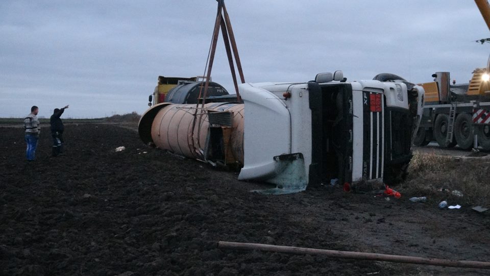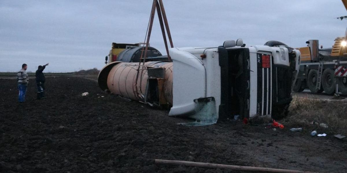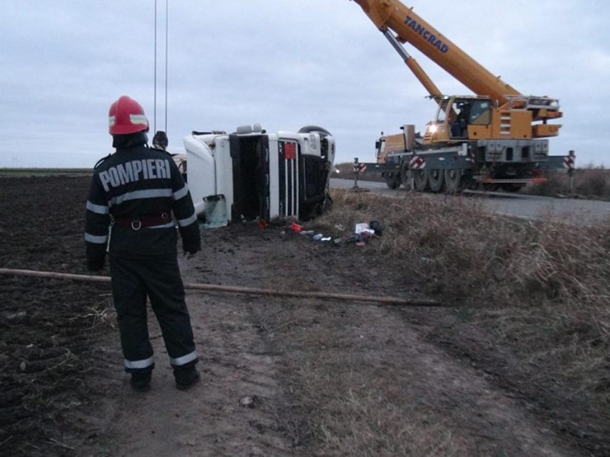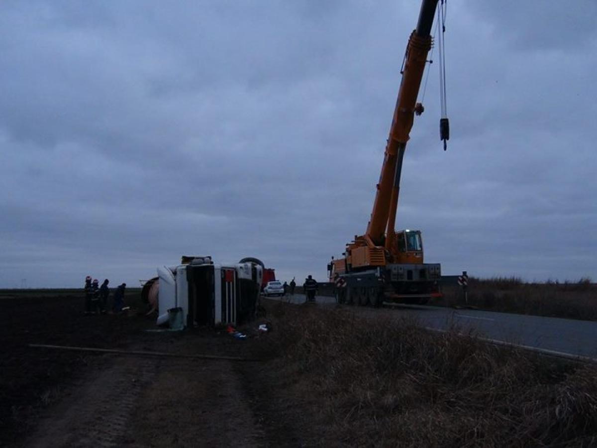 La faţa locului s-au deplasat echipaje ale poliţiei, pompierilor, o macara şi încă o cisternă pentru a prelua încărcătura.