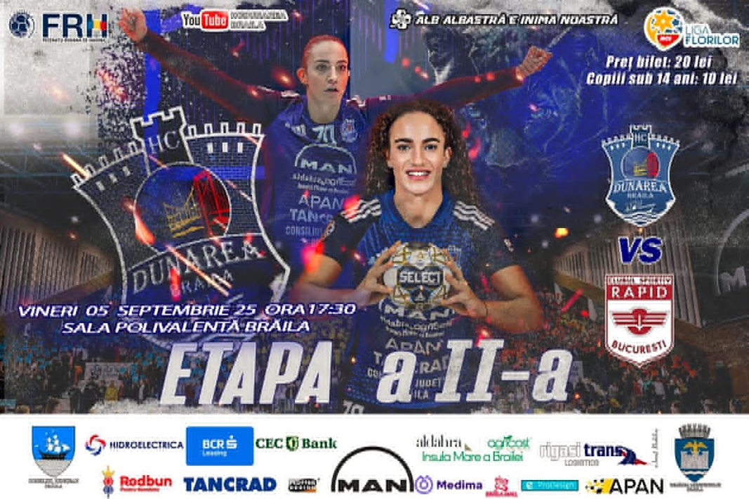 Vineri, 5 septembrie, de la ora 17:30, Polivalenta brăileană va găzdui derby-ul din etapa a 2-a a turului Ligii Florilor, HC Dunărea – Rapid București.