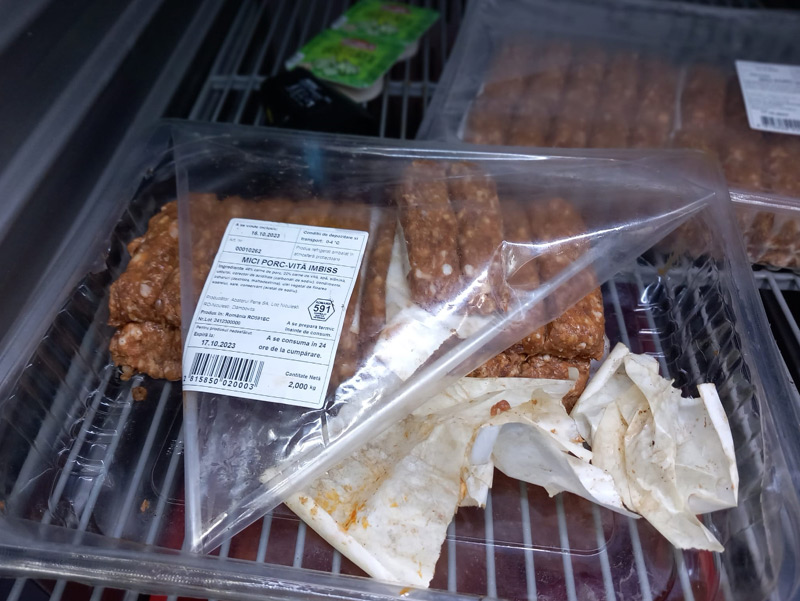 - produse din carne refrigerată (pulpă dezosată pasăre și cotlet de porc fără os preambalate la caserolă, spată de mânzat refrigerată și gulaș de berbecuț) cu modificări organoleptice.