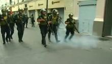 În timpul demonstraţiei au avut loc ciocniri cu forţele de ordine, care au folosit gaze lacrimogene împotriva mulţimii furioase.