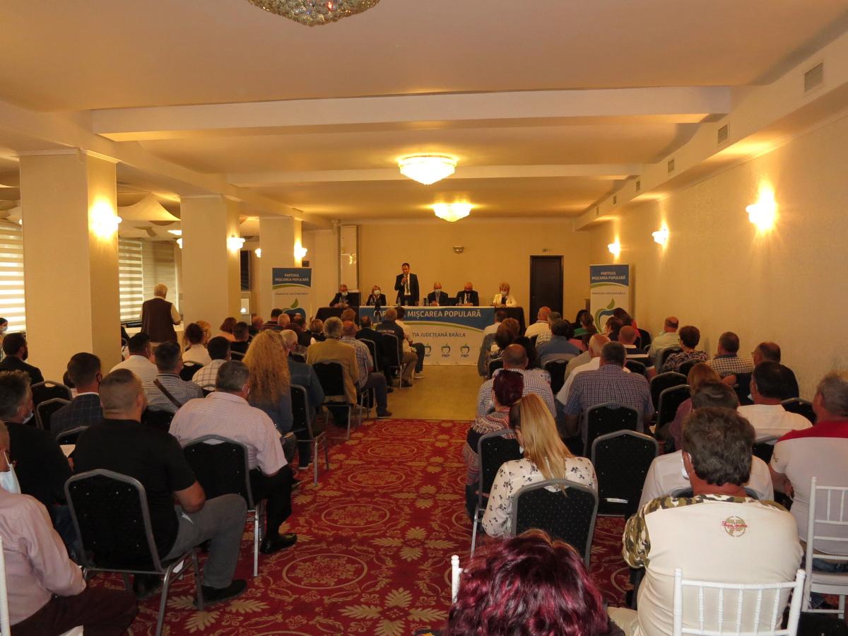 Aproape 200 de delegați ai PMP Brăila s-au întrunit, astăzi (vineri, 17 septembrie), pentru a lua parte la lucrările Conferinței Filialei Județene. Evenimentul a avut loc la Regal Events Ballroom (fostul Club Progresul). Cu această ocazie, consilierul județean Viorel Botea a fost reales în funcția de președinte. Au fost 183 de voturi valabil exprimate și tot atâtea ”pentru” ca Botea să conducă organizația județeană pentru următorii patru ani. Lucrările Conferinței s-au desfășurat în prezența lui Cristian Petrescu, vicepreședinte al PMP Central - Departamentul pentru dezvoltare regională și administrație publică.