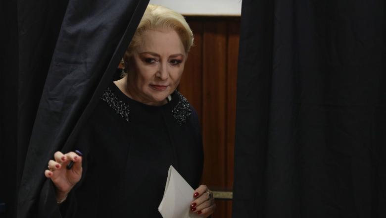 Viorica Dăncilă a votat la Colegiul "Sfântul Sava" din Bucureşti, unde a venit însoţită de soţul ei şi de Olguţa Vasilescu.