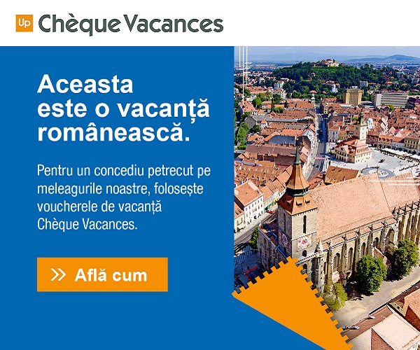 Anul acesta, beneficiarii voucherelor de vacanta Chèque Vacances se pot bucura de un concediu accesibil in Brasov si in imprejurimile acestuia, avand acces la preturi speciale de cazare la pensiuni agro turistice si la hotelurile afiliate retelei Up Romania. Exista motive multiple pentru care Brasovul este ales ca destinatie de vacanta: aer curat de munte, liniste, trasee montane deosebite, obiective turistice recunoscute international - Piata Sfatului, Biserica Neagra, Strada Sforii – cea mai ingusta strada din Europa etc.