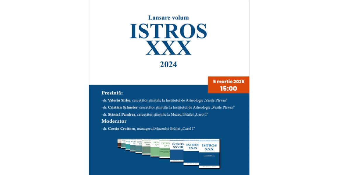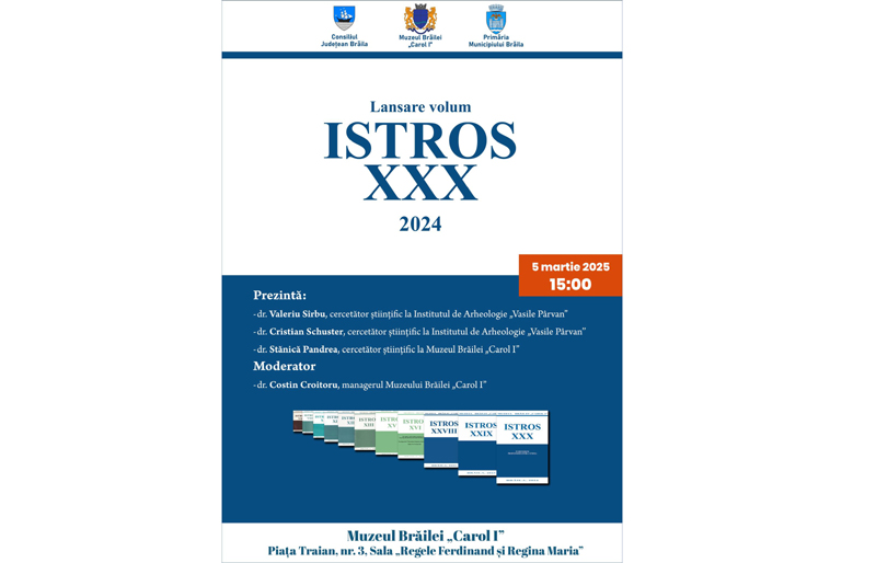 Muzeul Brăilei „Carol I” îi invită pe brăilenii pasionați de istoria acestori locuri binecuvântate în ziua de miercuri, 5 martie, începând cu ora 15:00, la lansarea volumului ISTROS XXX, apărut la Editura Istros a Muzeului Brăilei „Carol I” în anul 2024. Evenimentul va avea loc la sediul central al Muzeului Brăilei „Carol I”, din Piața Traian nr. 3, Sala Regele Feredinand I și Regina Maria”.